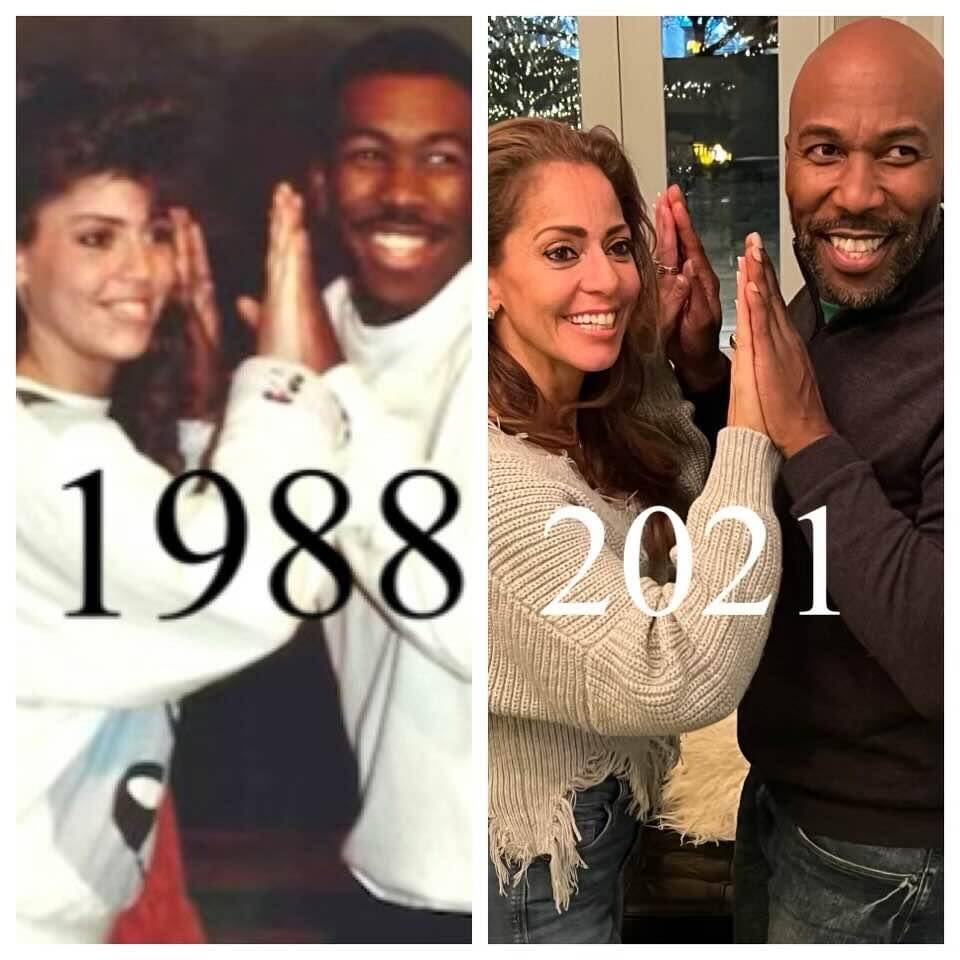 Two terrific Vegas entertainers and individuals, Janien Valentine and Eric Jordan Young, go way back. All the way to the late-1980s. To close the year, Valentine posted side-by-side pics of the two in the same pose, touching hands in a high-five position, from ‘88 and again this week. The two actually met in 1987, as students at Williams High School in East Amherst, N.Y., just outside of Buffalo. They performed in the musical “Finian’s Rainbow” together, and have been close friends ever since. The first shot is from their prep days. The second is from Young’s birthday party Thursday night at the home of fellow entertainers Brent Barrett and Bernie Blanks.