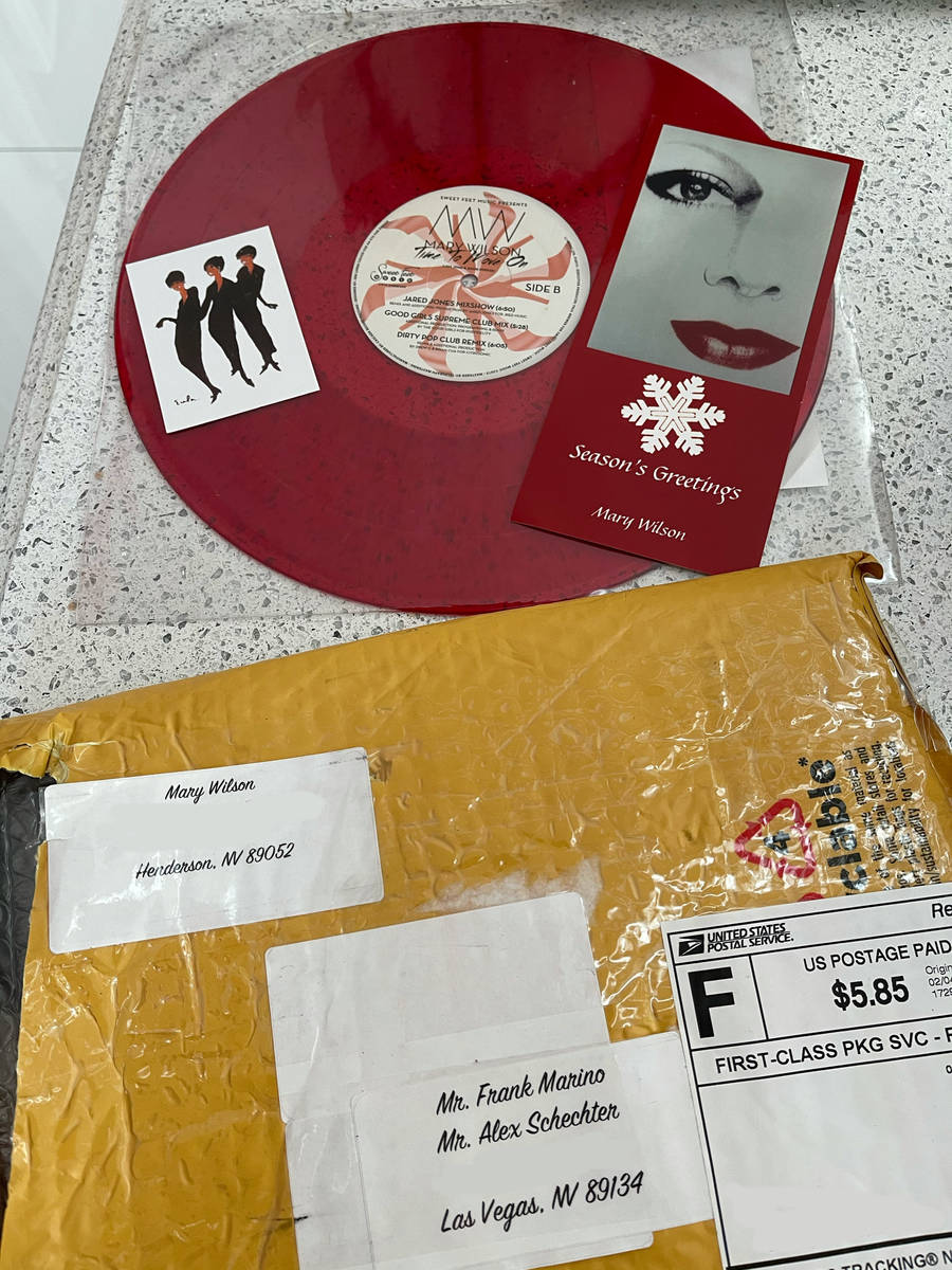 The box contained a greeting card, a red-vinyl album, titled, “Time To Move On.”