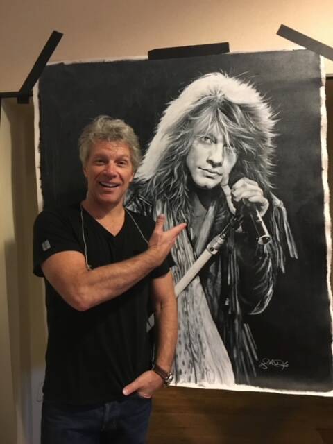Douglas’s friends in the rock community heeded the call to open the drummer’s collection of paintings of such rock icons as Tyler, Gibbons, Jon Bon Jovi, Freddie Mercury, Stevie Nicks, Tom Petty and Elvis.