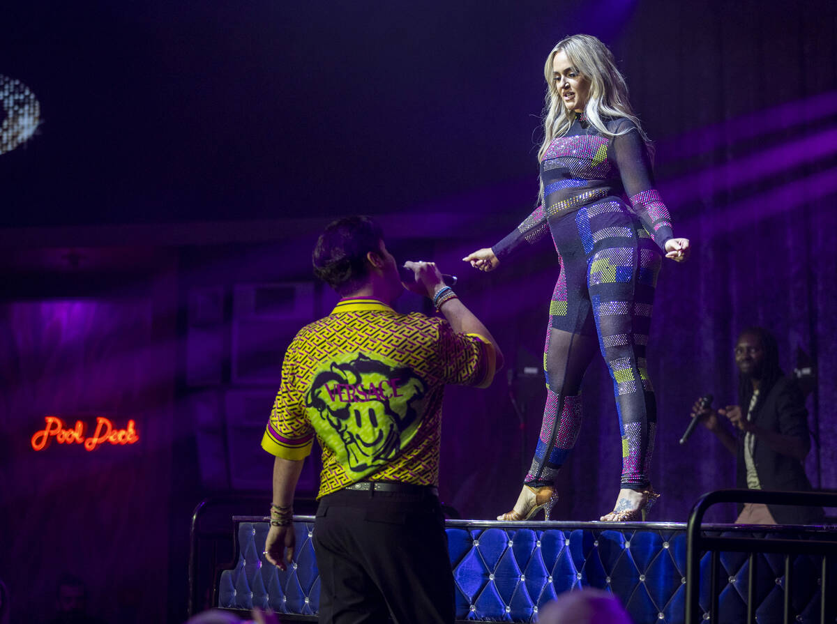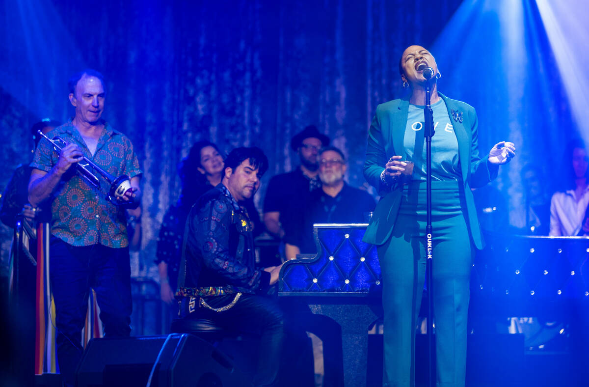 Entertainers in the room for Moreno’s opener included Stephanie Sanchez (also on the Palms’ entertainment team); Clint Holmes; Earl Turner; Chris Phillips of Zowie Bowie; Vincent John of Bronx Wanderers (appearing solo Sunday night at Notoriety Live); crooners extraordinaire Jonathan Karrant and Chadwick Johnson; Bryan Hopkins of Elvis Monroe; top comic Geechy Guy; The Space founder Mark Shunock and his wife, Cheryl Daro; jazz great Michelle Johnson; Skye Dee Miles (who hosted the cracking private post-party at the 55th-floor Ghostbar); rock vocalist Paul Shortino; rock-guitar star Christian Brady; The Funk Jam at Sand Dollar Lounge founder Anthony James; pop-opera singer Giada Valenti; Vegas singer-songwriter Shawn Eiferman, and longtime Elvis tribute artist Cole (just Cole) from “Million Dollar Quartet.”