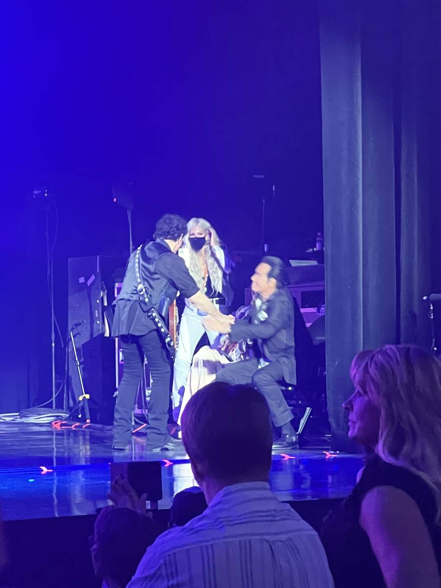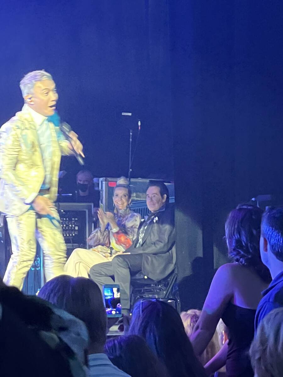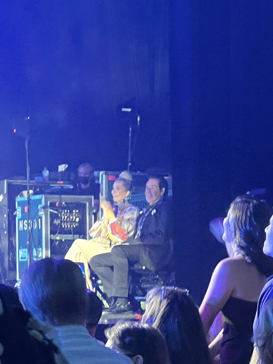 The Newtons sat on stage left/house right, visible from the crowd. Near the end of the show, Schon strode over and greeted the couple as the crowd roared.