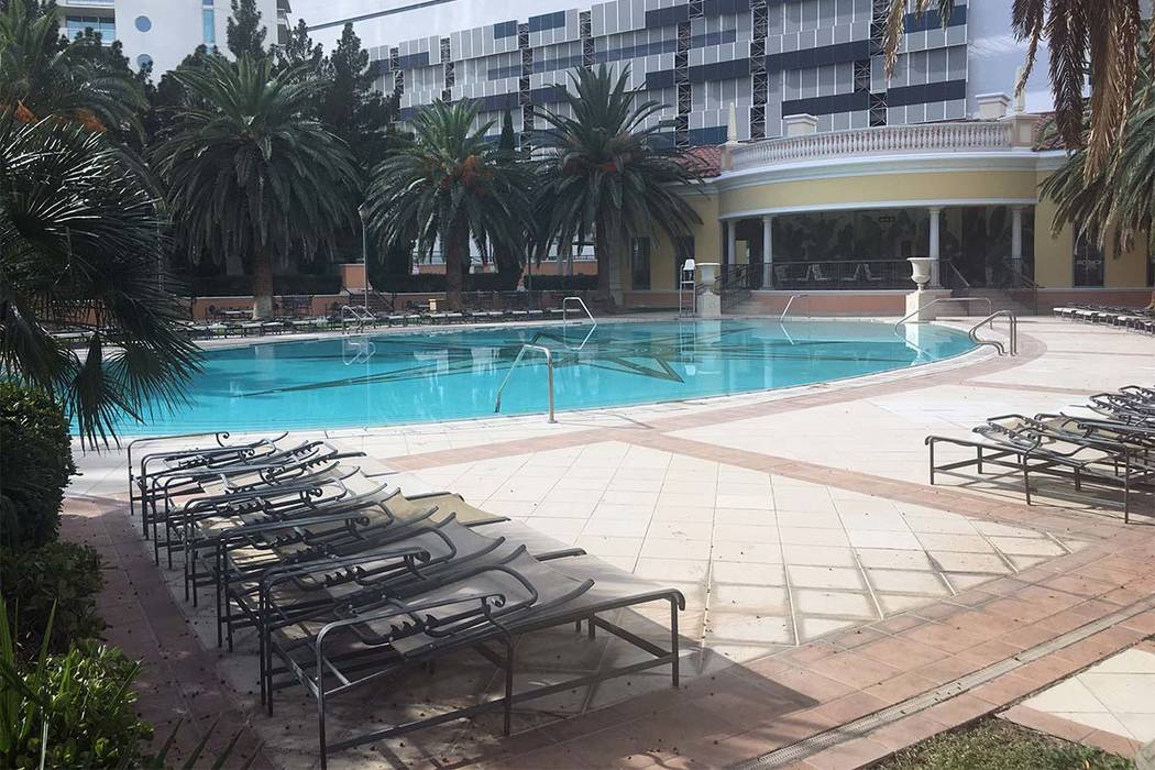 The main Stirling building sits on a 3-acre parcel with tennis courts, a fully furnished gym, a cigar room, dining room and several conference rooms. Its princely appointed main building is decorated in wood, brass and a staircase layered in red carpet. The scene was percolating until the decline hit, prompting owners Jeffrey and Jackie Soffer, and their company, Turnberry Associates, to close the club and put it up for sale in 2012.
