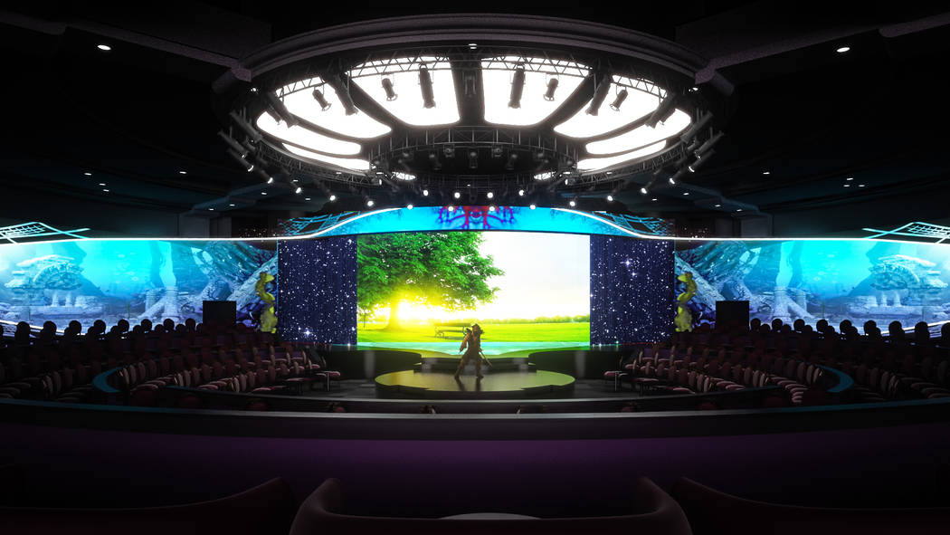 For “WOW” (short for “World of Wonder”), the old “Rock in Rio” and “Duck Commander Musical” theater is being overhauled to create a largely in-the-round experience, with a 1,000-square-foot pool and LED screens running the entire width of the stage.