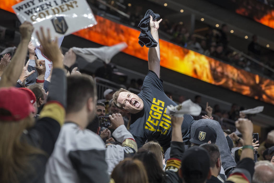 Down 3-1 in the Stanley Cup Final, the Vegas Golden Knights can use a boost. Maybe a wild fan can dance down the aisle at T-Mobile Arena at Thursday’s Game 5, tearing off multiple T-shirts and cajoling the crowd to “Make Some Noise!”