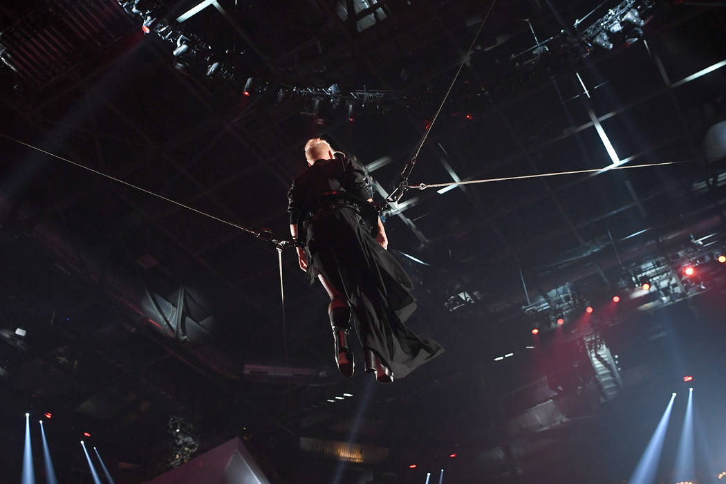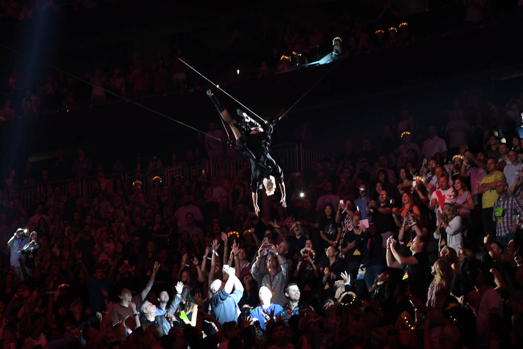 You can always count on Pink for something uncommon. She also flew around the arena in a harness for “So What,” a move she has performed so frequently in VegasVille she could guest-star in “MJ One” at Mandalay Bay.