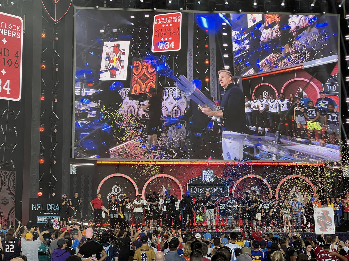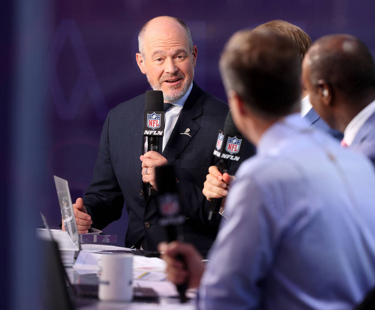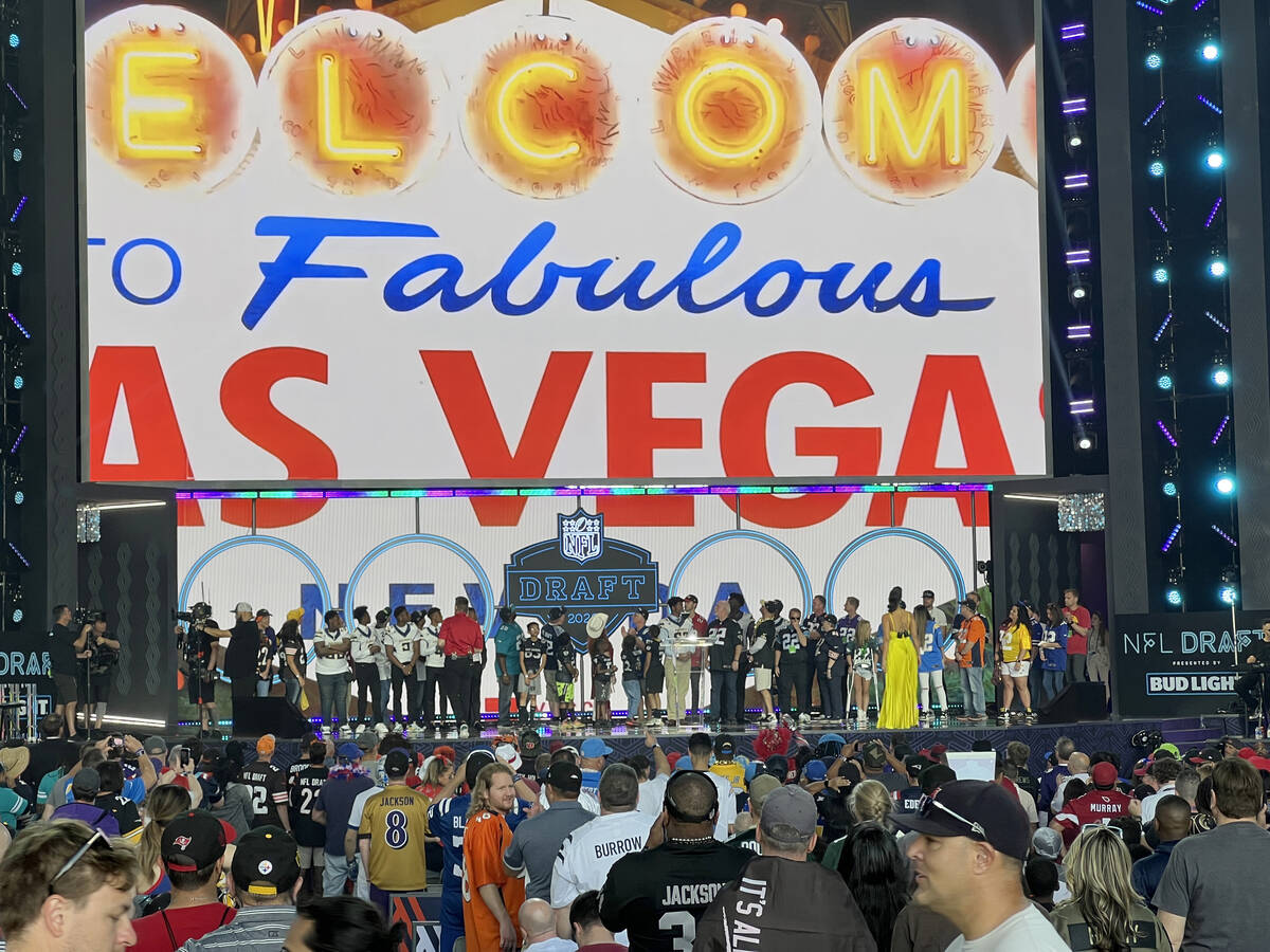 “We had Sebastian Maniscalco making the Bears’ pick, and then I went out last night right after the draft and saw Sebastian Maniscalco’s show,” Eisen says, referring to Maniscalco’s performance at Encore Theater. “This doesn’t happen at the NFL draft. I think it’s terrific. Some towns are transformed by the NFL, but Vegas is built for the NFL. It is absorbing it, and it is feeling very comfortable.”