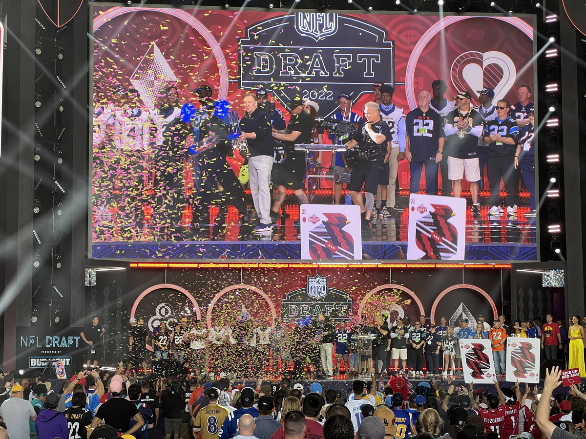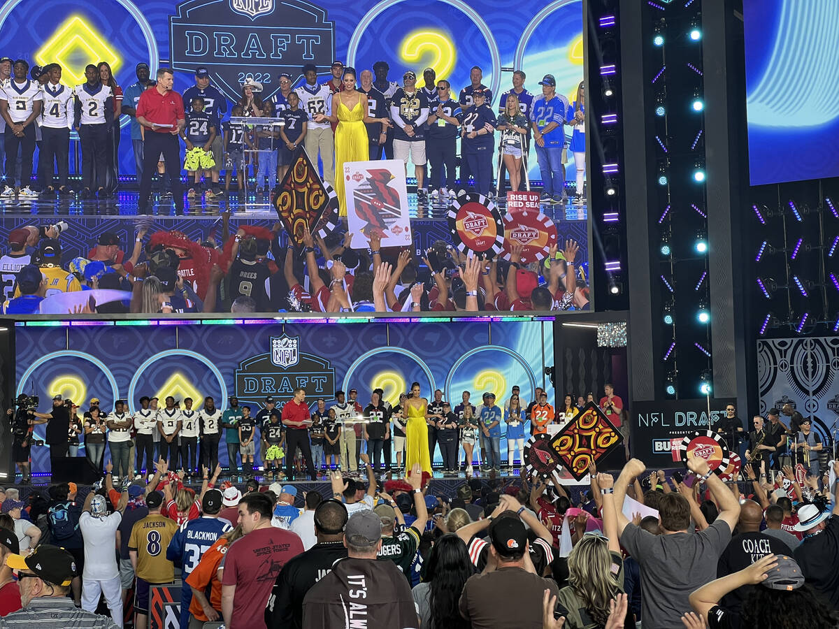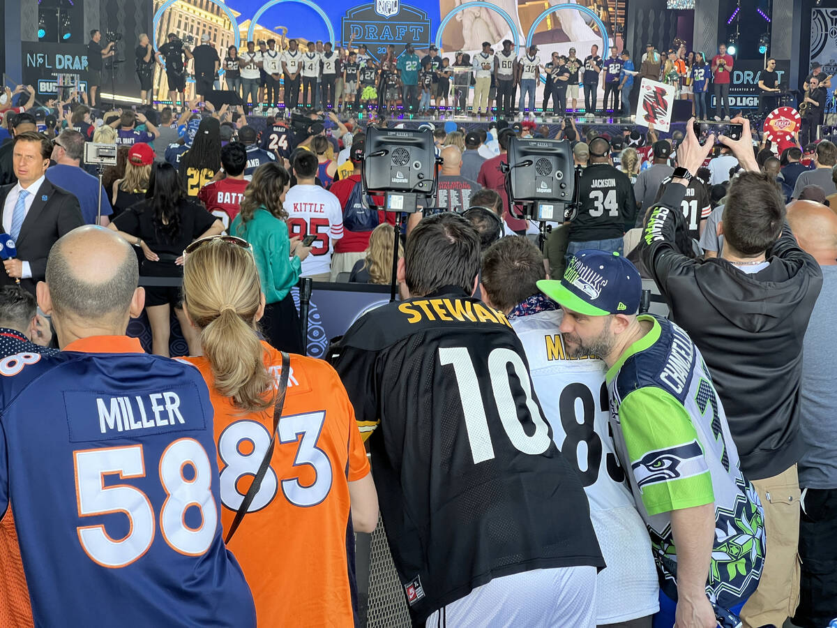 “We had Sebastian Maniscalco making the Bears’ pick, and then I went out last night right after the draft and saw Sebastian Maniscalco’s show,” Eisen says, referring to Maniscalco’s performance at Encore Theater. “This doesn’t happen at the NFL draft. I think it’s terrific. Some towns are transformed by the NFL, but Vegas is built for the NFL. It is absorbing it, and it is feeling very comfortable.”
