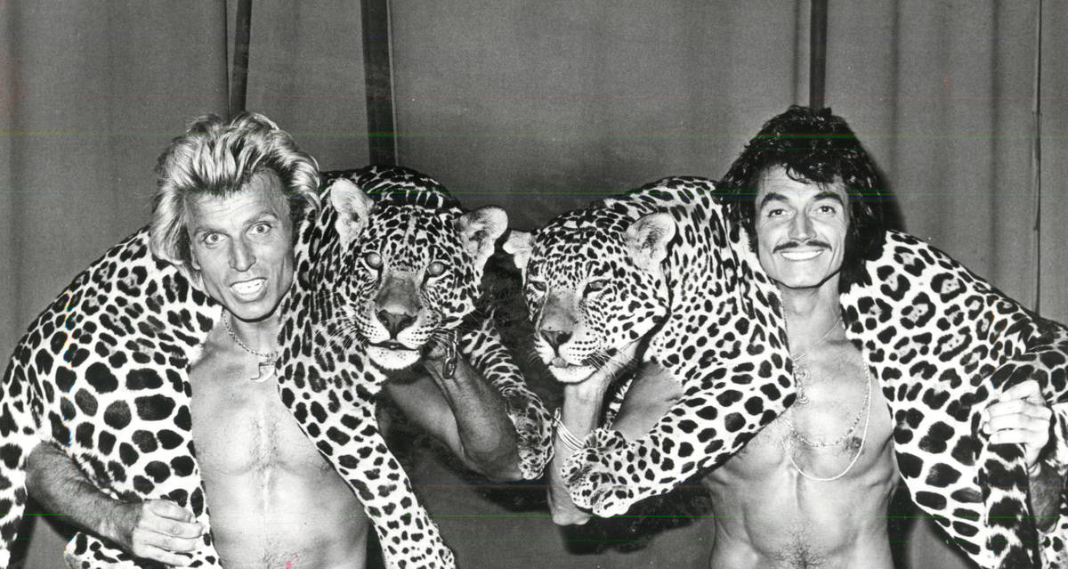 Siegfried & Roy arrrived in Las Vegas in 1967 as a specialty act in “Folies Bergere” at the Tropicana. Beginning in 1970, they spent three years at the Stardust in “Lido de Paris,” also as a side act. From 1974 to 1978, they were featured in “Hallelujah Hollywood” at the original MGM Grand (now Bally’s), then were brought back to “Lido” in an expanded 30-minute act.
