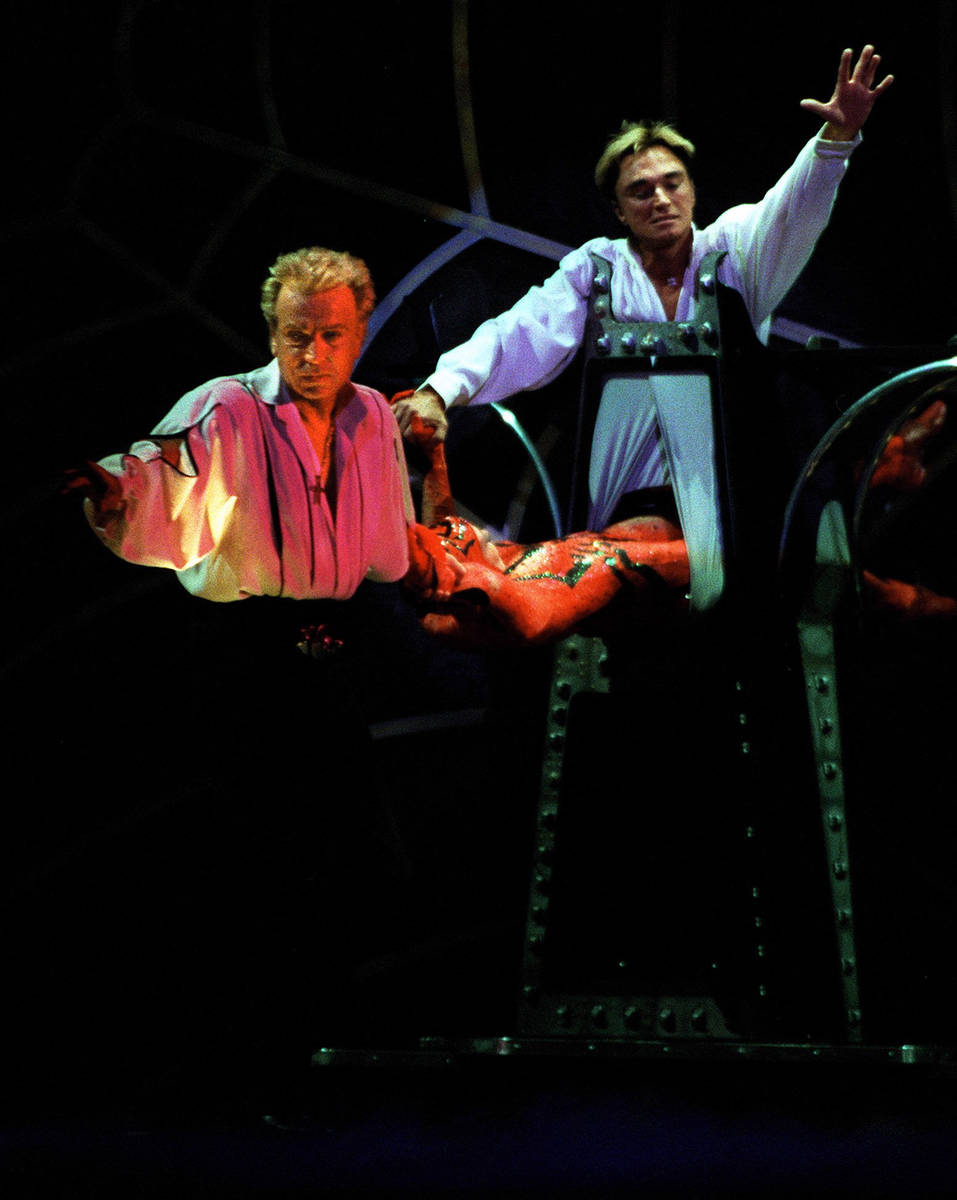 The S&R show debuted in Mirage’s 1,500-seat theater in 1990. They would headline 5,750 performances prior to Horn’s injuries. The act returned a final time, at the Keep Memory Alive Power of Love gala at the Bellagio on Feb. 28, 2009, when they made a big cat, later billed as Mantecore himself, vanish.