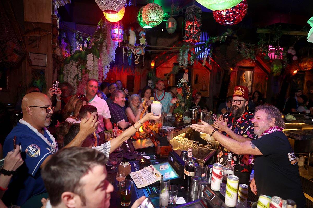 “When I want to be in disguise, I take off my sunglasses,” he said. Hagar also served cocktails from his Sammy’s Beach Bar Cocktail Co. This is the canned, rum-infused beverage that fuels the vibe at The Strat.