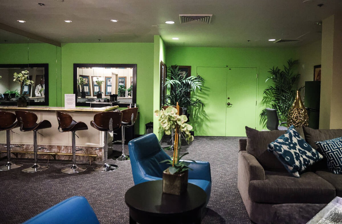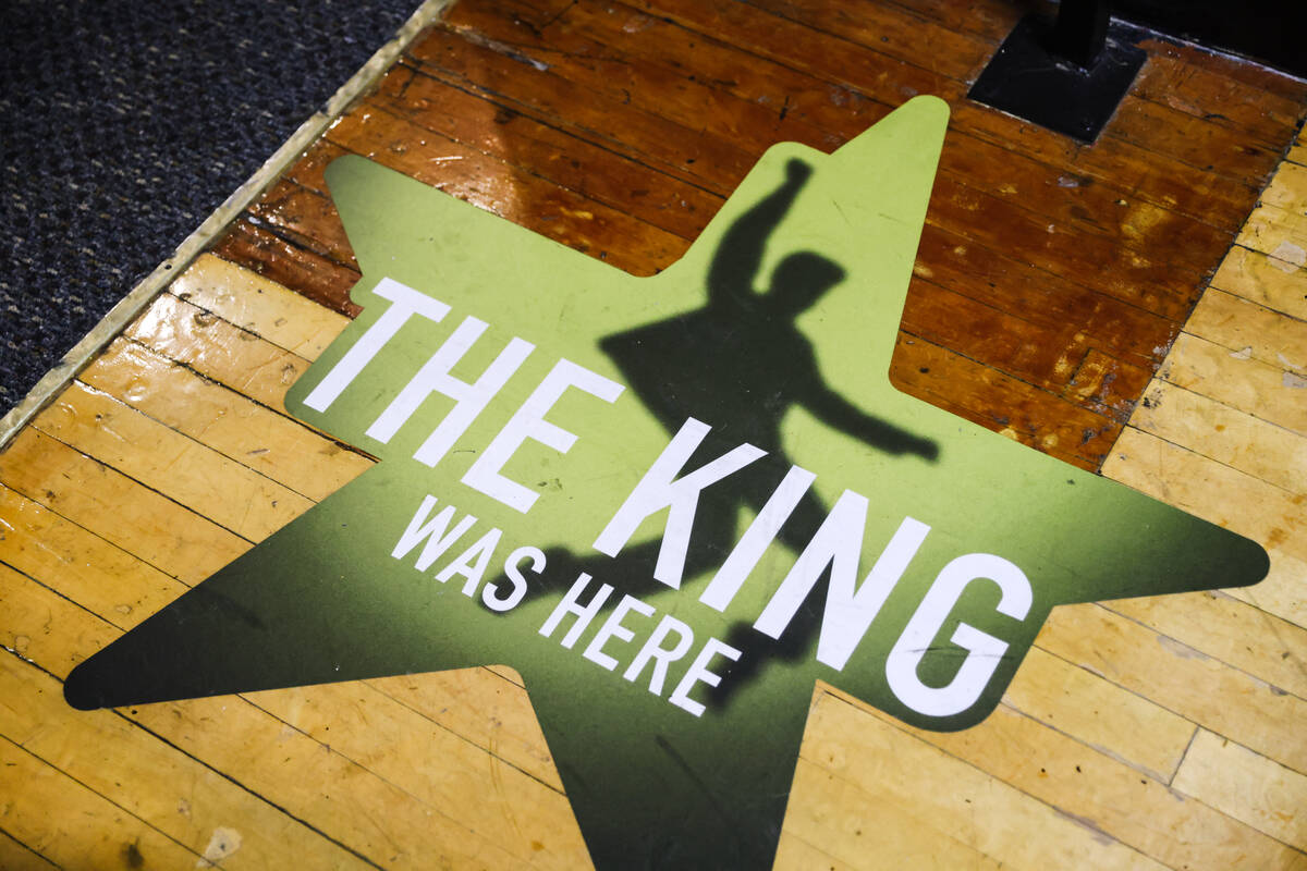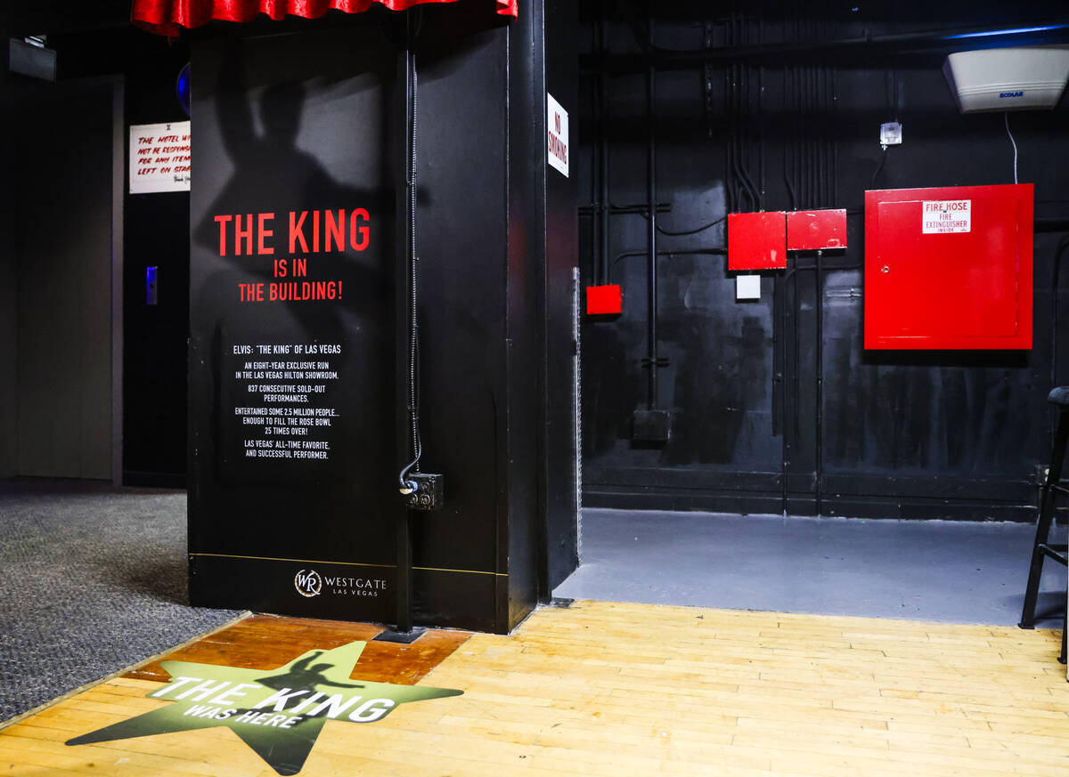 When Gordon Prouty took over as the hotel’s vice president of public and community relations in 2018, he dressed up the space. The sign proudly states it is where Elvis stopped and meditated before striding onstage.