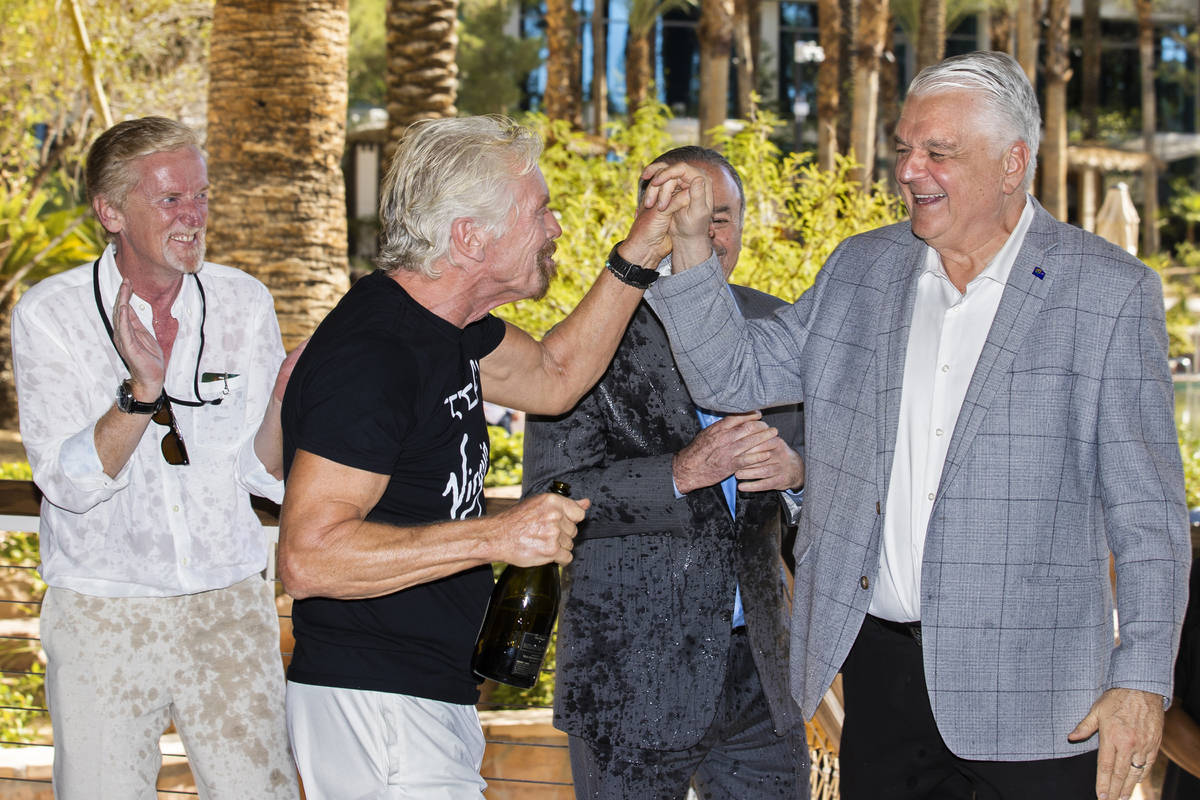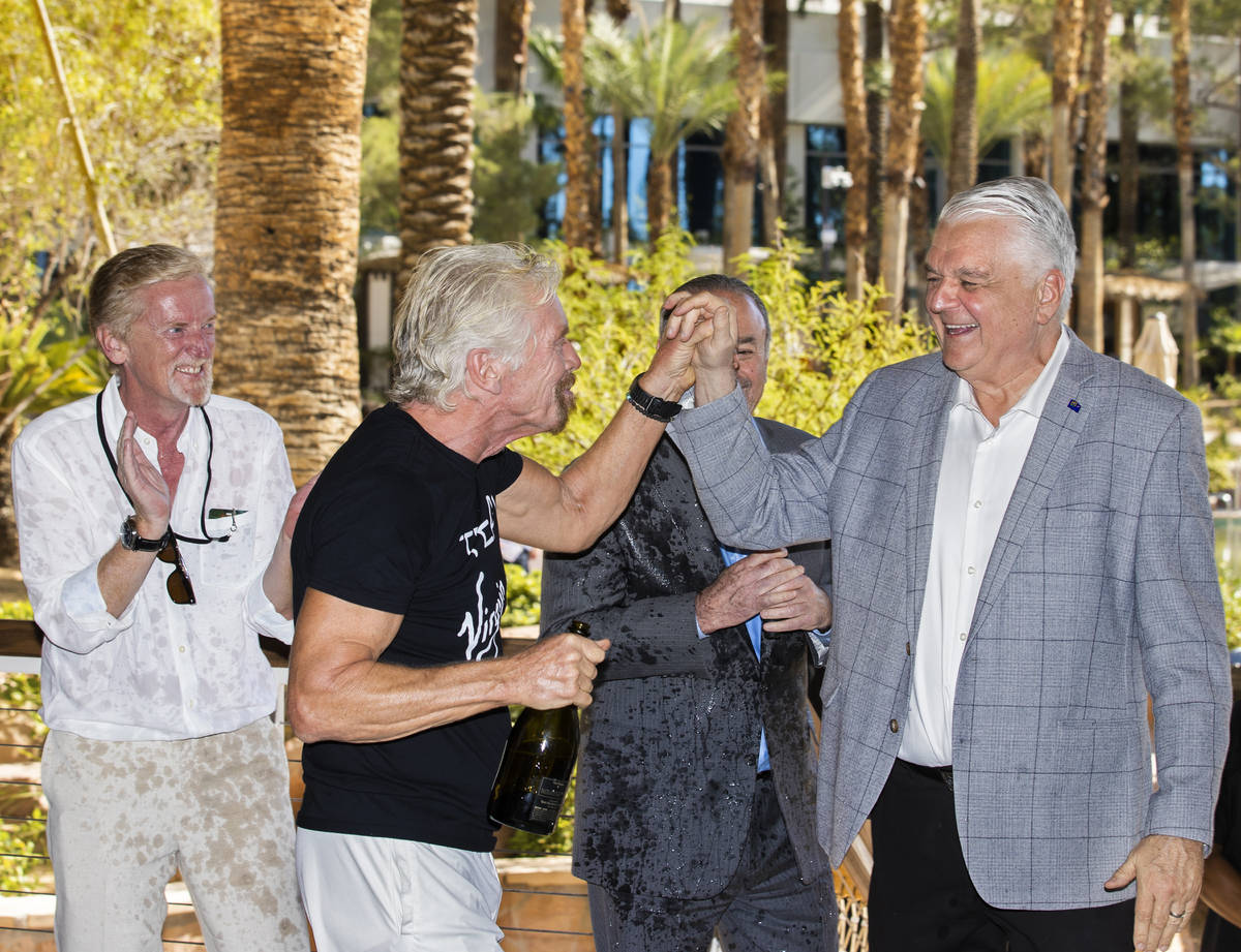 The champagne soak was the only blasting of Sisolak on this day. Both Branson and Richard “Boz” Bosworth, president and CEO of the resort’s ownership group, JC Hospitality, praised Sisolak for assigning the construction industry as essential workers through the pandemic.