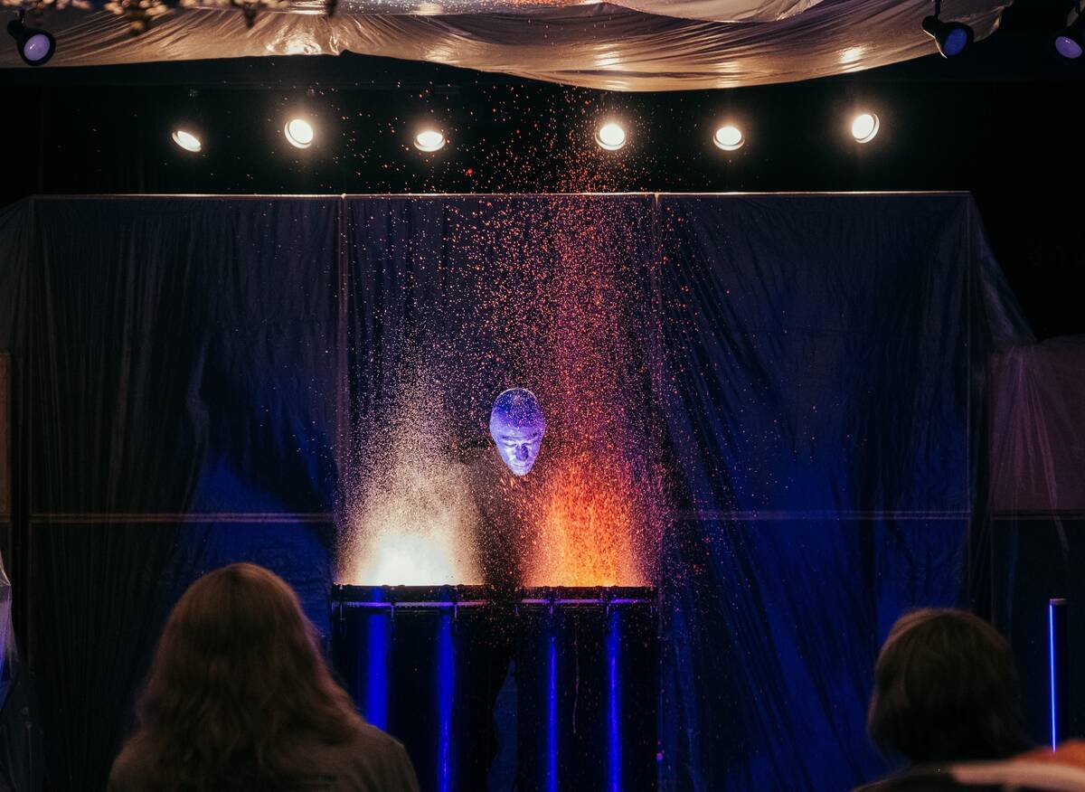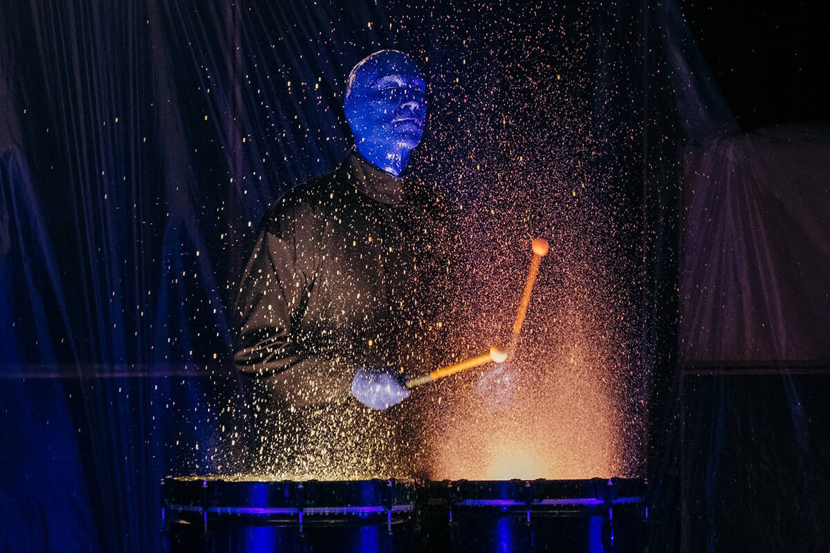 “It just kind of falls into place that they would be casting a wide net for various types of drummers, and Blue Man Group was on the list,” says BMG Productions Artistic Director Matt Ramsey, who has been with the company for 20 years and plays the film role. “We set up the paint drums and worked out a drum part to it and that’s what we did.”