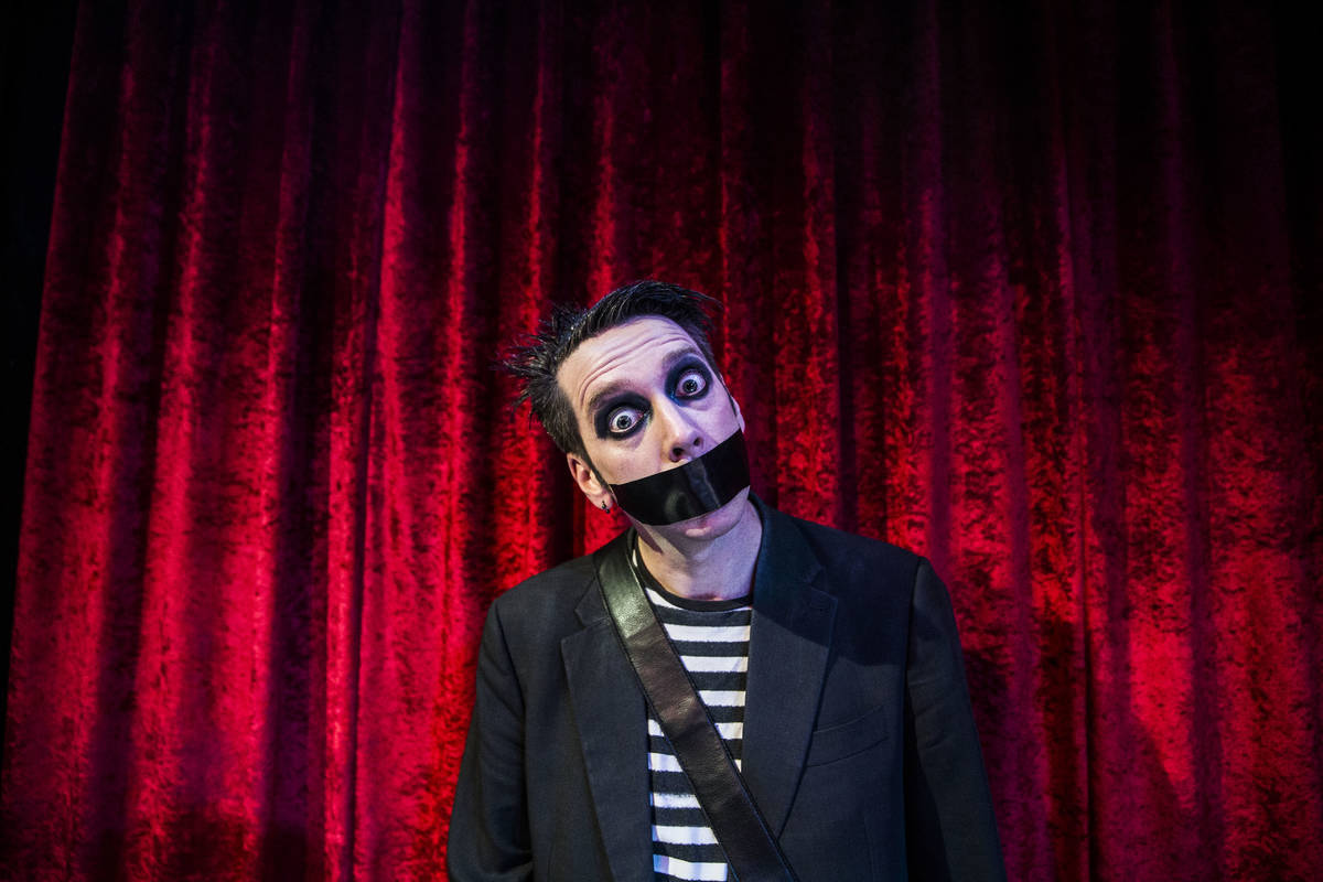 Tape Face has said that he was far ahead of the trend of wearing face covers in public. Now his audiences will hear from him, at least for a few minutes, with the black gaffer tape removed from his mouth.