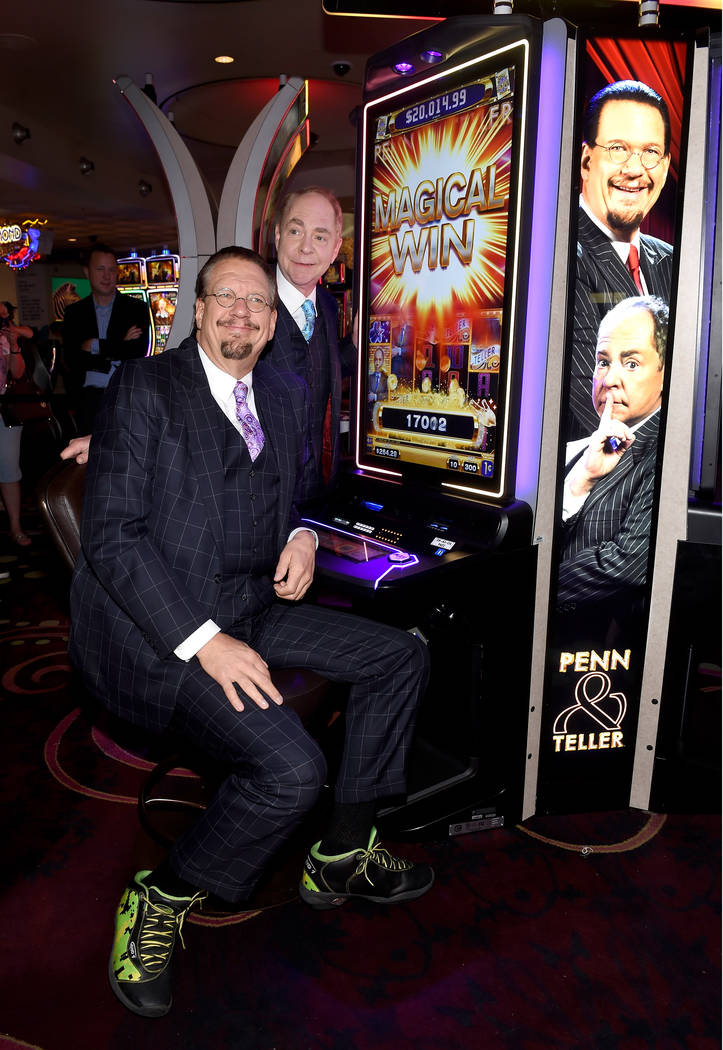 Penn & Teller unveiled a new slot machine featuring their likenesses on Tuesday afternoon at the Rio. Keeping the event in perspective, Jillette said, “This is it. We’re done. Everything we’ve been working for is in this machine. No more live show. No more ‘Fool Us.’ We’ve got these slot machines.”