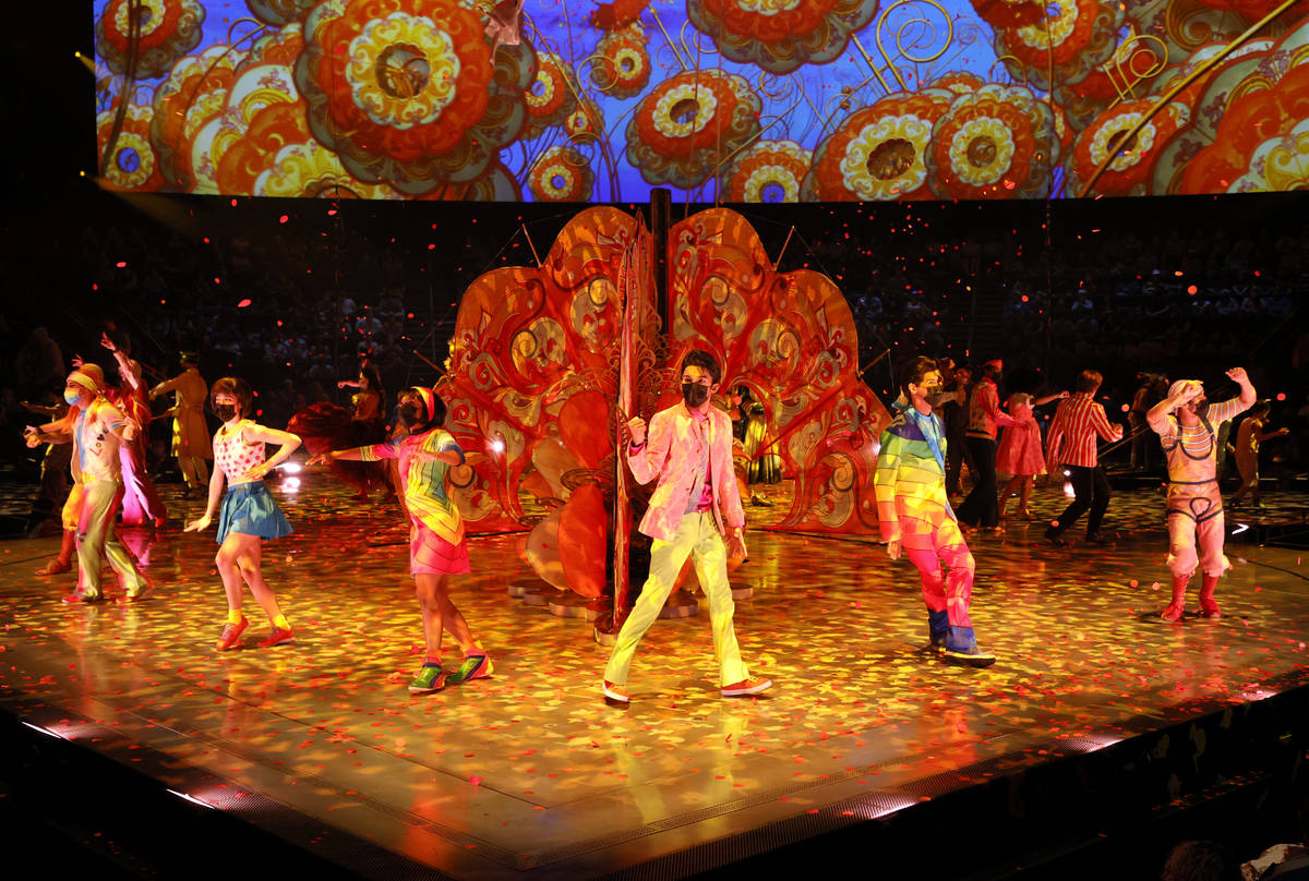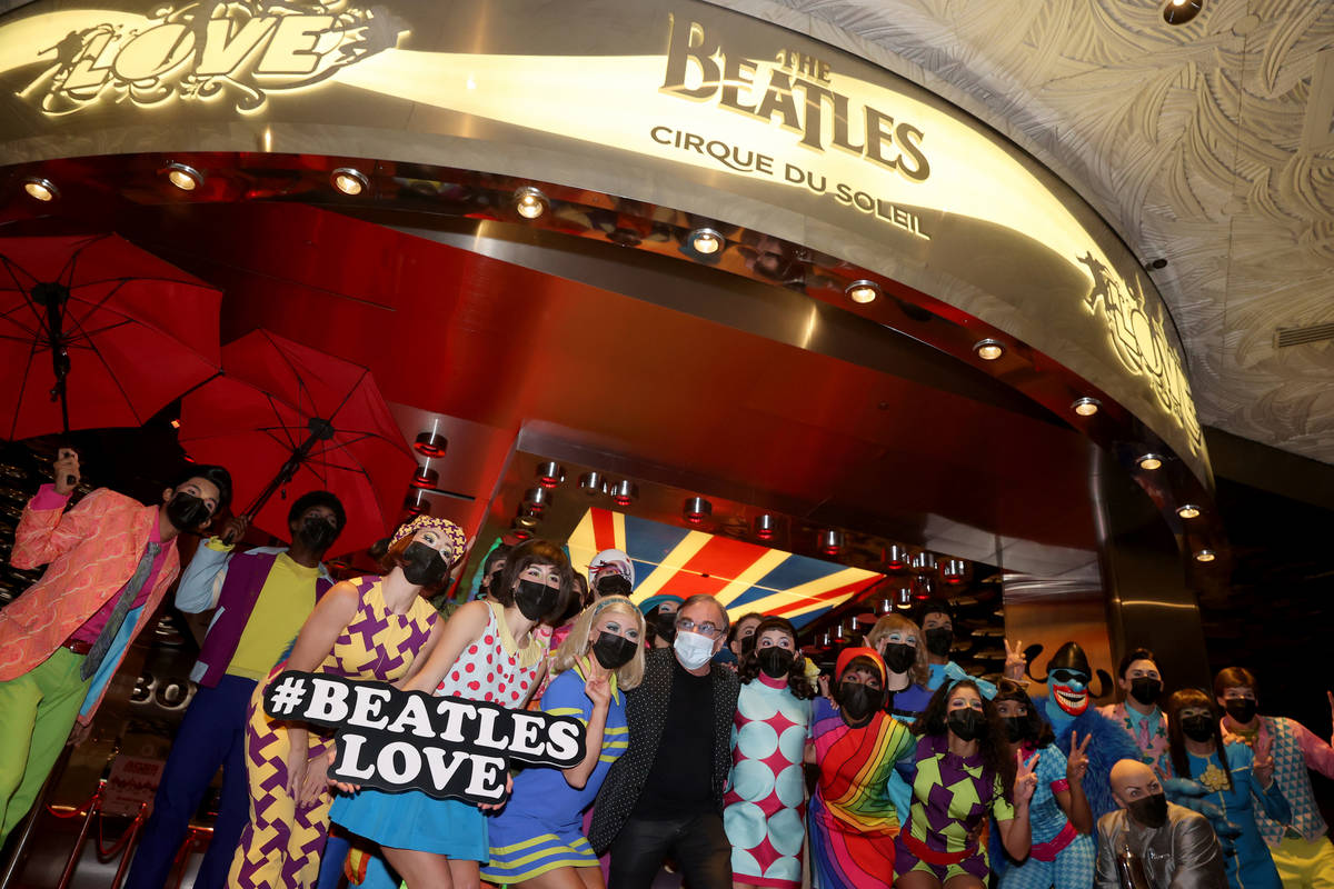 During “The Beatles Love” at The Mirage, the song rolls through the theater as a white, silk drape covers the audience. Those in face covers were, themselves, collectively covered. It was something of a moment of unity, leading later to “Come Together,” as the show soared back after a layoff covering almost 18 months.