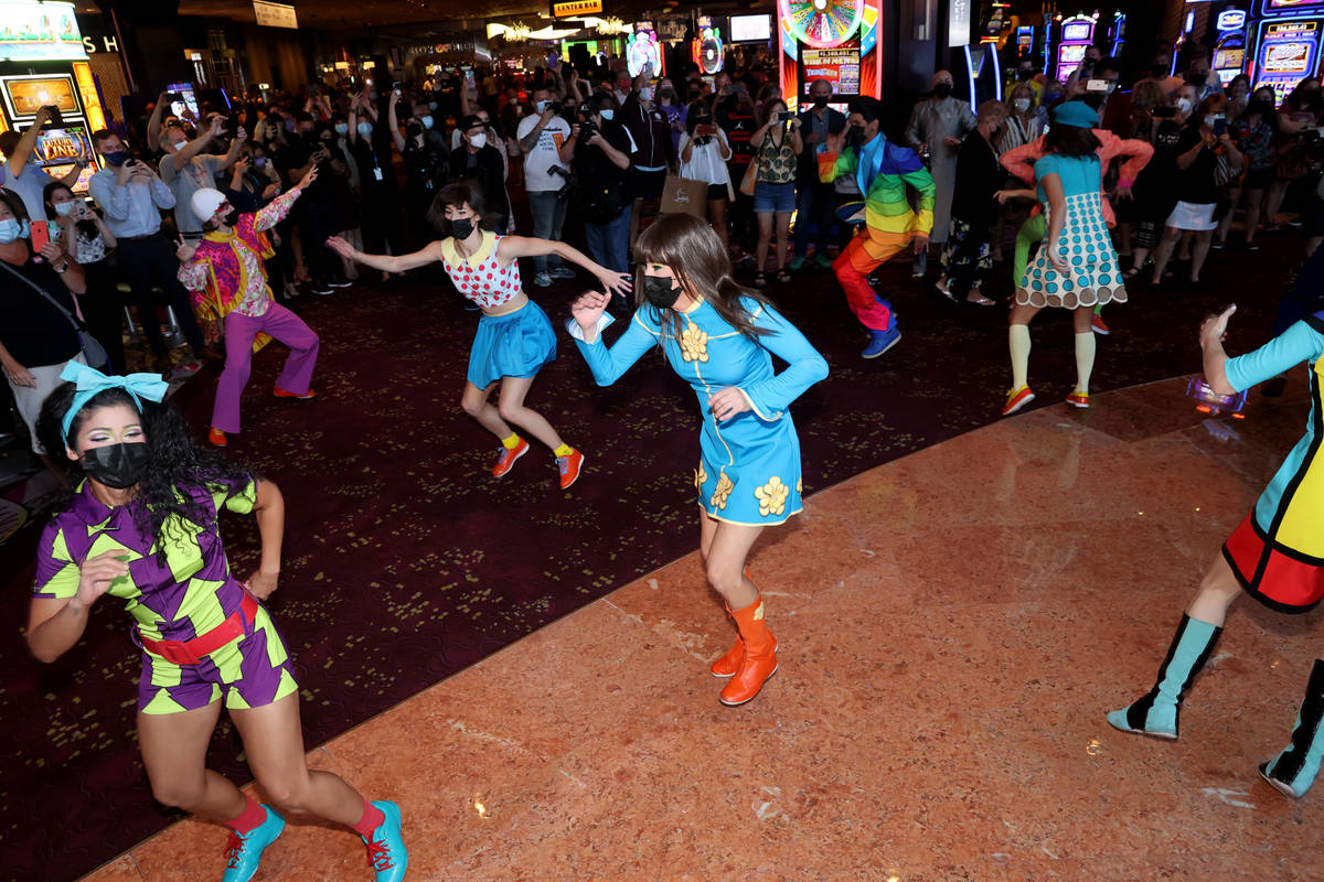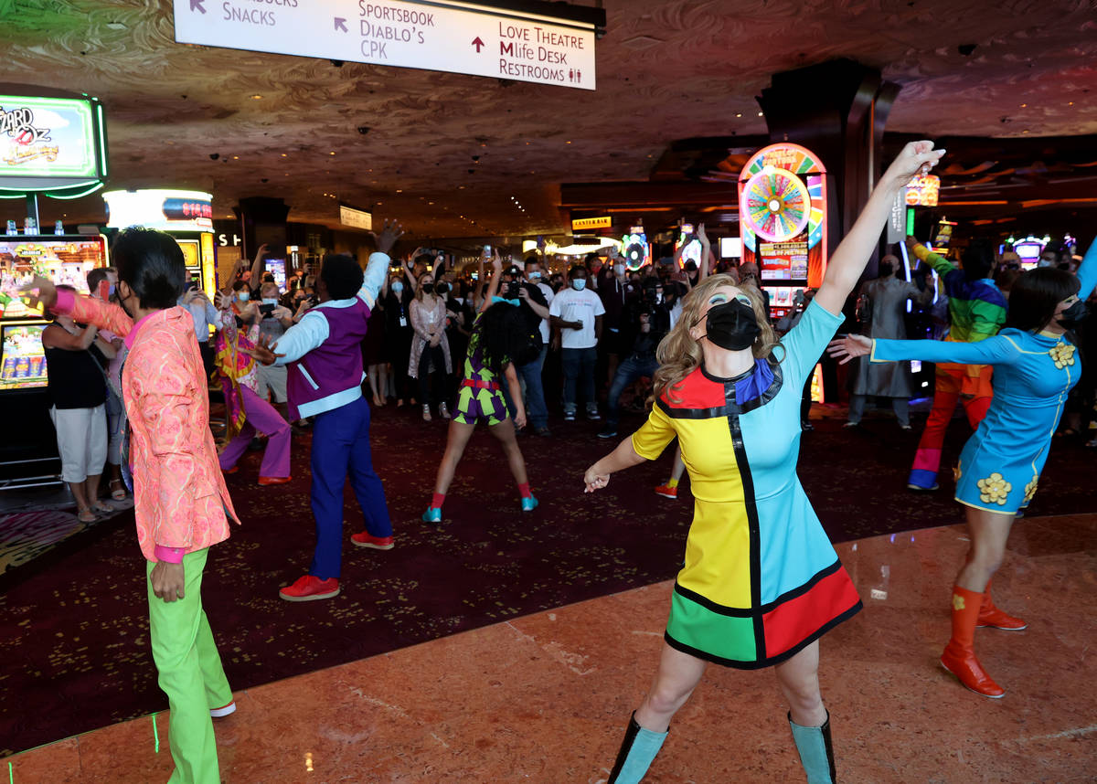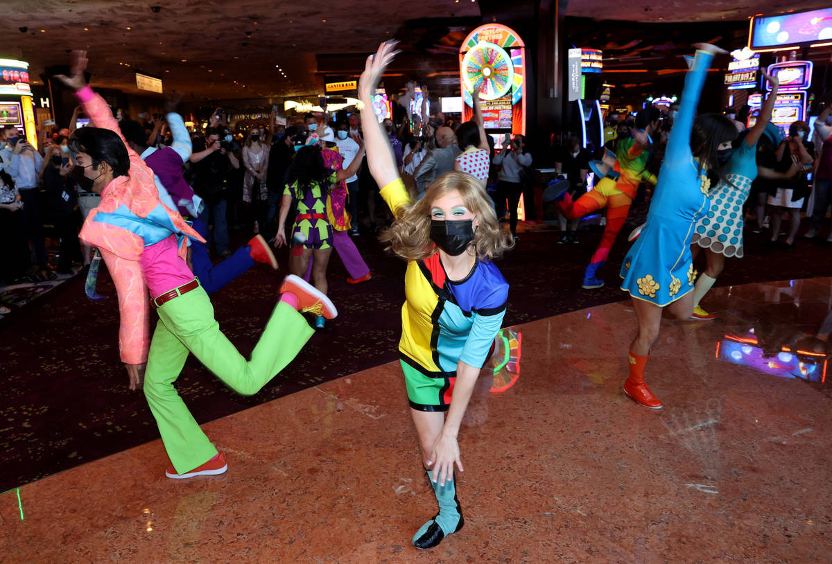 Prior to the relaunch, the cast cavorted through the casino grooving it up to “Get Back” as surprised tourists captured the moment on their cellphones. The cast had rehearsed the return in street clothes Wednesday, and as one Cirque creative type remarked, “The tourists probably thought they were high.”
