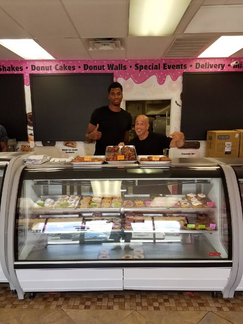 The business has had its first Who Was Where sighting: Hassan Whiteside of the Miami Heat stopped in Monday for a Boston Cream (but not Boston Celtic) donut.