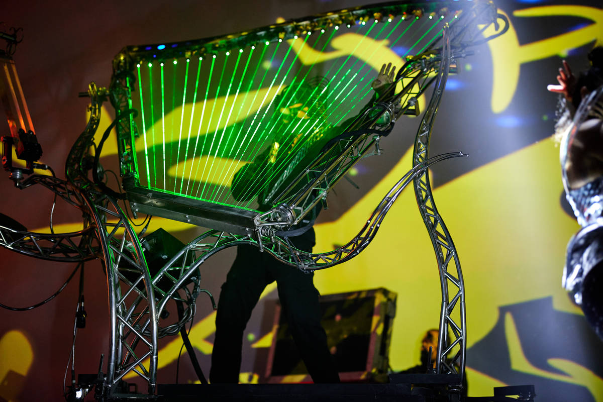 “I have been looking to combine music virtuosity with that highly produced electronic dance music,” says Chang, a classically trained pianist who has designed and fabricated such instruments as the laser harp, which he played Saturday.