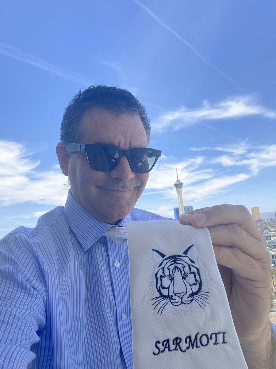I still have the SARMOTI tie, of course. I’ve not worn it, other than to snap a few selfies over the weekend. The neckpiece still has the residue of Roy’s stage makeup, and that famed SARMOTI logo. If and when we share a public celebration of Roy Horn’s life and career, you’ll see it there.