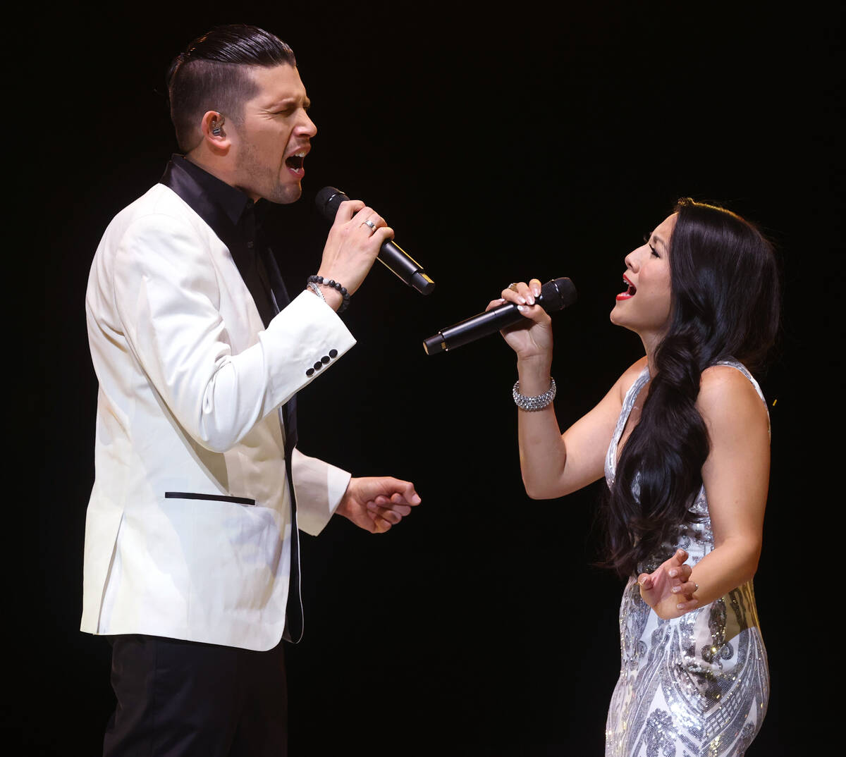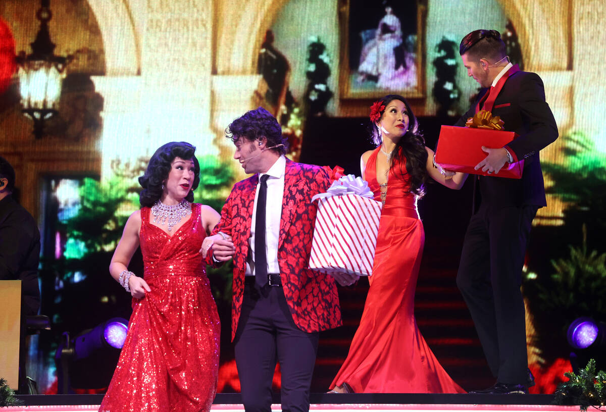 Onstage, the talent bursts singers Diana DeGarmo and Ace Young (“American Idol”), Randal Keith (“Le Miserables,” “Phantom — The Las Vegas Spectacular”), Laura Wright (“Vegas! The Show,” “Fantasy” at Luxor and “Idol”), Jaclyn McSpadden (“Baz,” “Postmodern Jukebox”), Lou Gazzara (“Vegas! The Show” and “Idol”), and touring duo Ben Stone and Jasmine Trias (also of “Idol”). The dance team of Sarah LeClear and Alejandro Domingo is also cast, grooving to holiday delight.