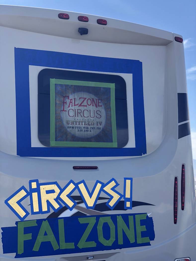 A curious, customized RV was seen rumbling along U.S. Highway 95 between Las Vegas and Reno on Saturday. Painted with the Falzone Family Circus logo, the rig is hauling officials from Spiegelworld to the annual Burning Man festival.