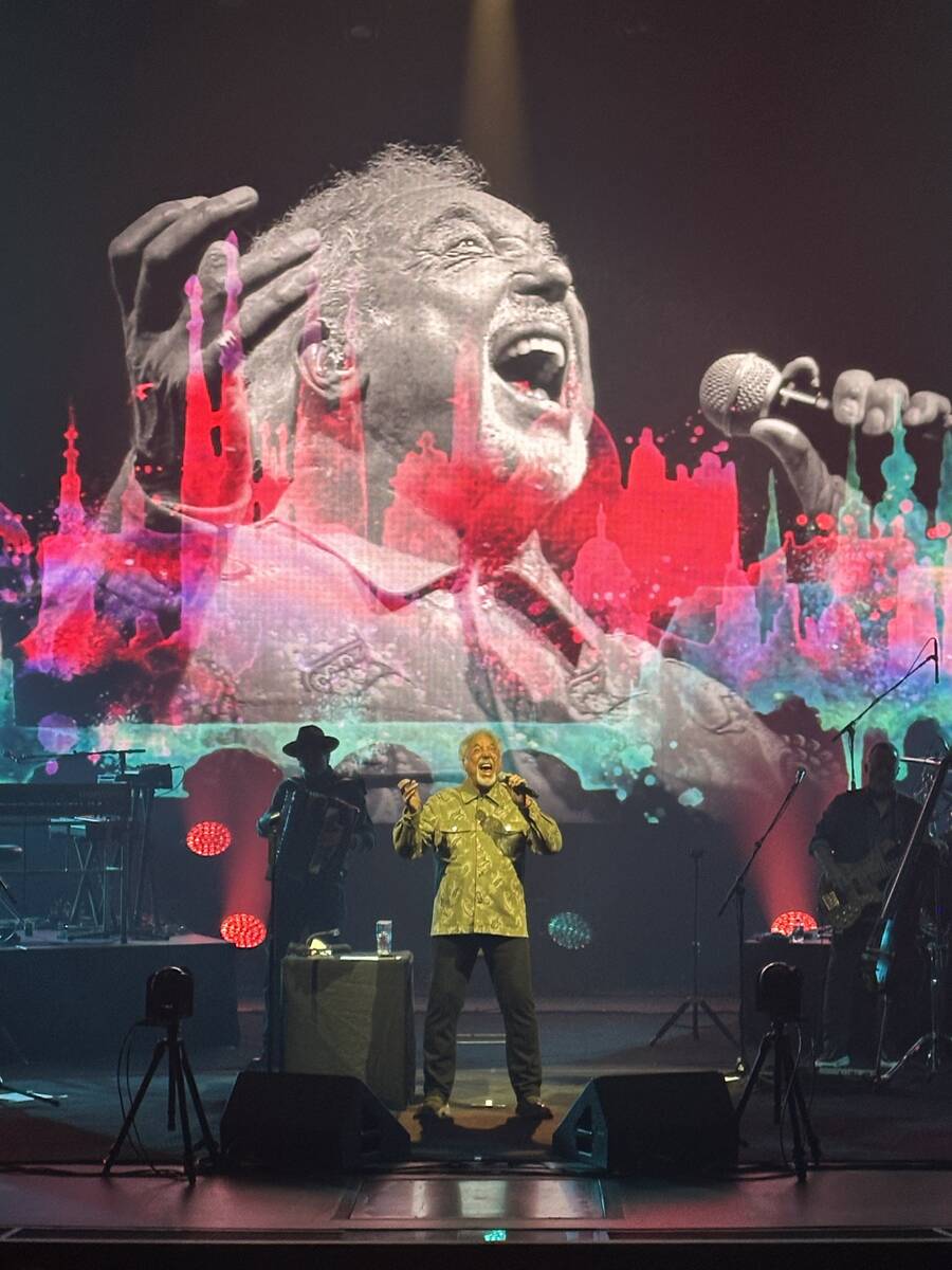The lyrics about Jones’ bushy, white mane hair are right. So is the line about him aching. The “What’s New Pussycat?” singer had been seated in his shows two years ago at the same venue.