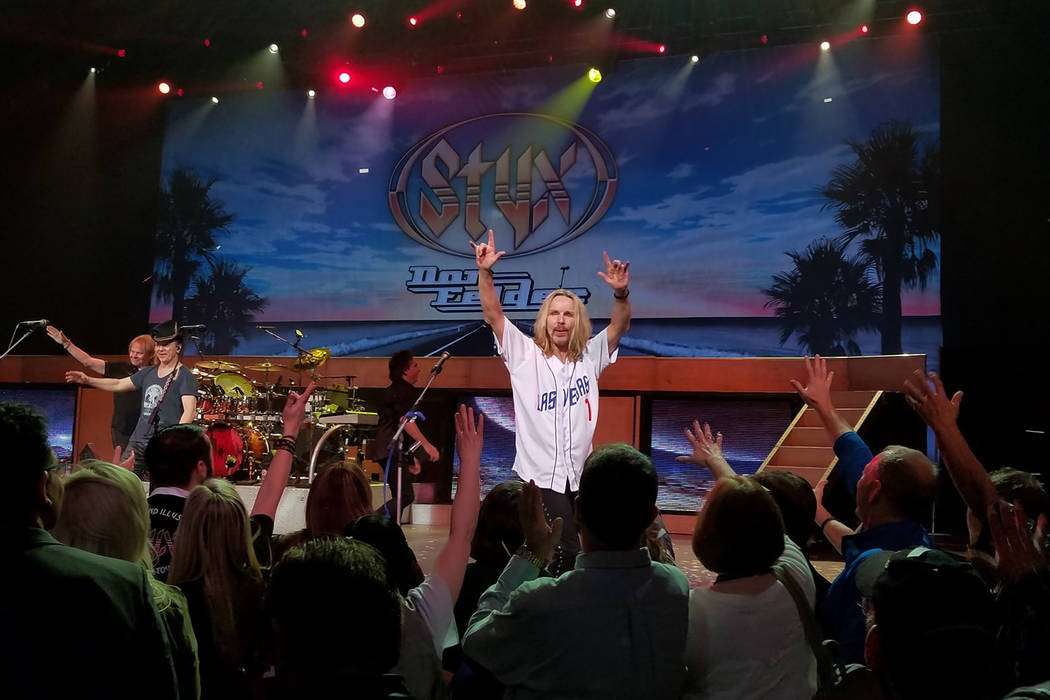 All right, Shaw is not a ballplayer and “Renegade” is not exactly his nickname. Nonetheless, the superstar guitarist and vocalist for Styx dressed the part for the band’s “Renegades in the Fast Lane” performance Wednesday night at The Venetian Theater.