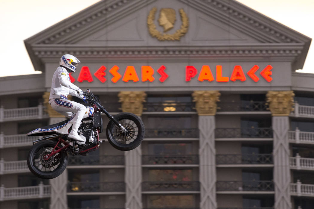 The made-for-TV event was a winner for Caesars Entertainment, which is bringing a Nitro Circus show (with Pastrana’s creative vision) to Bally’s Jubilee Theater in spring 2019. The 90-minute show is a partnership with Nitro Circus and Base Entertainment. Sunday’s “Evel Live” provided a launching pad for that production on the Strip, but the triple-jump event itself was a major undertaking.