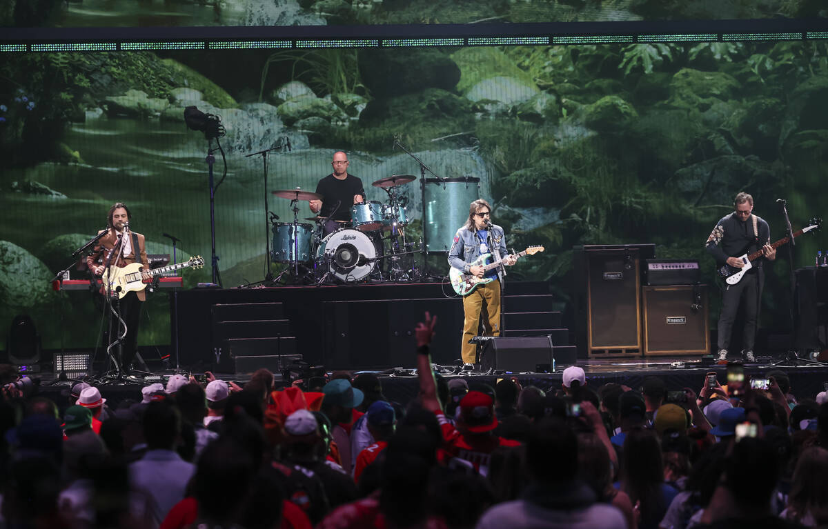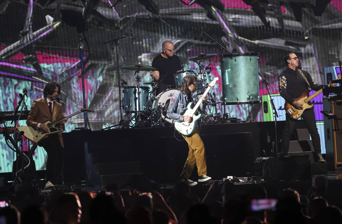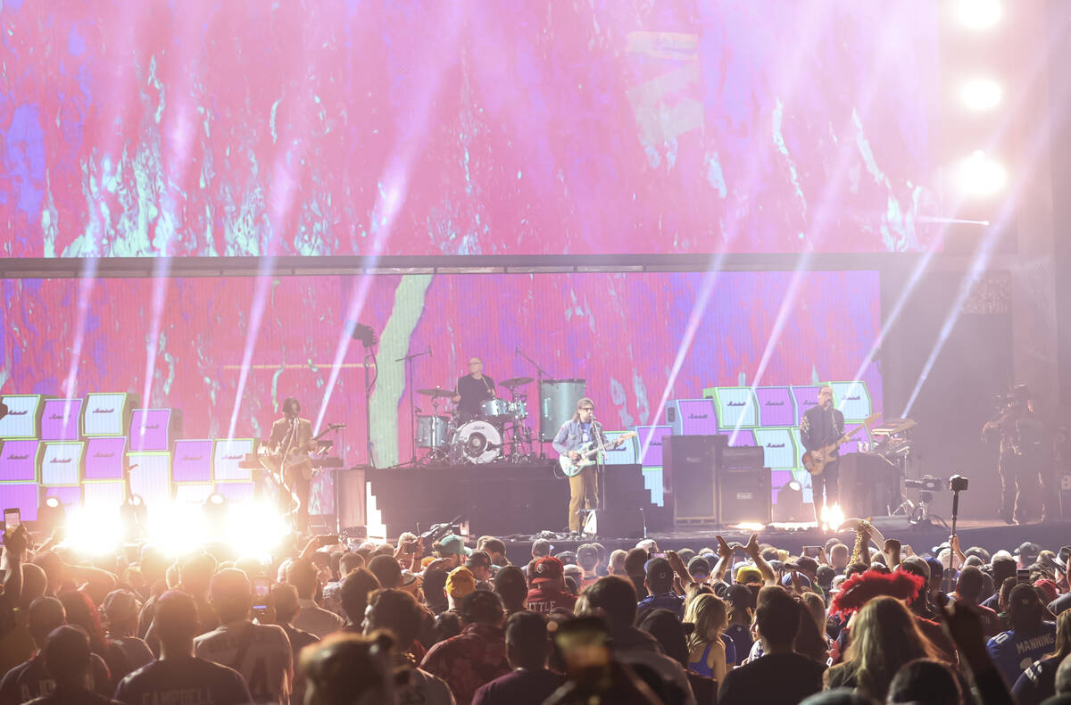 But that mattered little to the vibe for Weezer, for whom a little echo might be a little welcome. The band soared through a 10-song set lasting about 50 minutes. The setlist included “Hash Pipe,” “Buddy Holly,” and “Say It Ain’t So.” The band also charged through rote covers of Toto’s “Africa” and Metallica’s “Enter Sandman.” As the lyrics “Take my hand, off to never-never land” landed on that crowd, you felt the words symbolized the NFL’s first draft foray into Las Vegas.