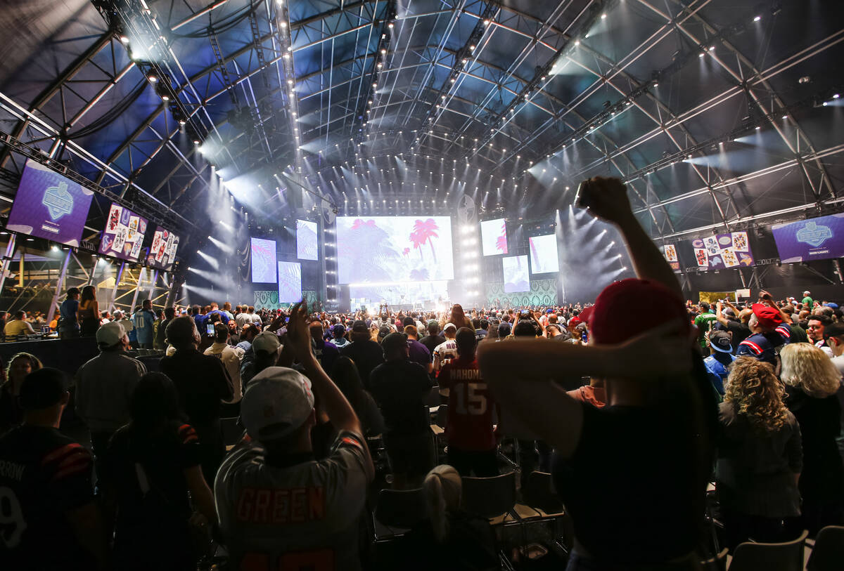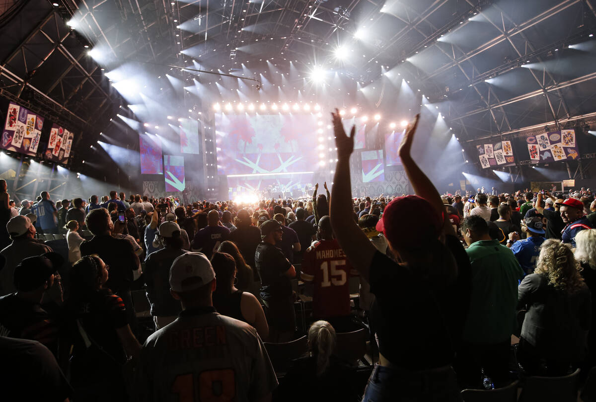 Kodi Lee of “America’s Got Talent Live” at Luxor and magician Mat Franco of Linq Hotel appeared at the Draft Theater prior to the selection of first-round picks. Planet Hollywood mainstay Criss Angel, the Las Vegas Academy Singers, Jabbawockeez at MGM Grand, the cast of “Absinthe” at Caesars Palace and the incoming Cirque du Soleil show “Mad Apple” at New York-New York played to the Strip at Red Carpet Stage.
