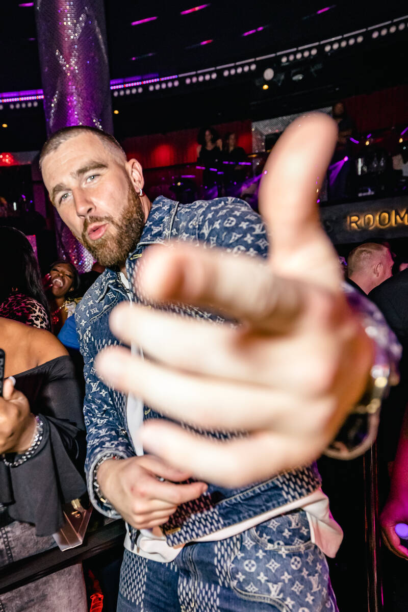 Kansas City Chiefs tight end and recent Las Vegas Strip party purveyor Travis Kelce joined Rick Ross’s headlining show at Drai’s Nightclub at the Cromwell on Saturday night. The rap star performed his hits “Stay Schemin,” “Ashton Martin Music,” and “Hustlin.”