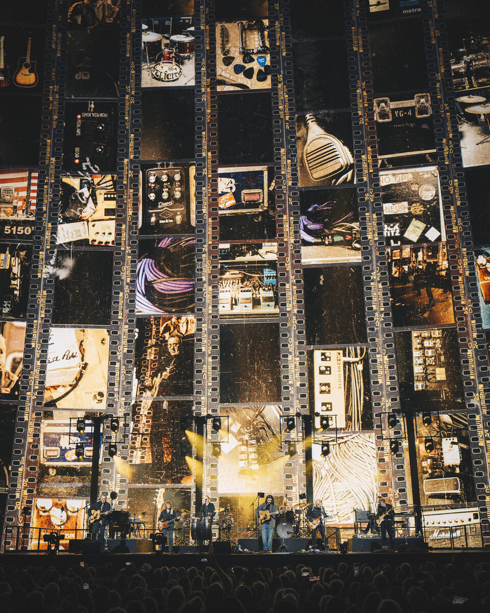 — A moving video montage of the band’s history plays during “New Kid in Town,” its expansion shrinking the individual images. Pro tip: Take a pic of the scene and zero in on the Easter eggs. You’ll find (for instance) the drum set Henley’s mom gave him, from the 1964 band Felicity.