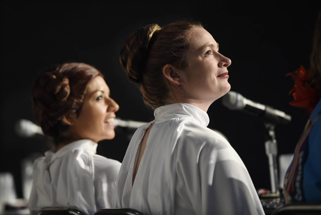 Several women dressed in Leia’s flowing white gown and iconic twin buns spoke about how much the character inspired them. One said she walked down the aisle at her wedding to Leia’s theme. Another said, “You put on a pair of buns, and you’re unstoppable.”