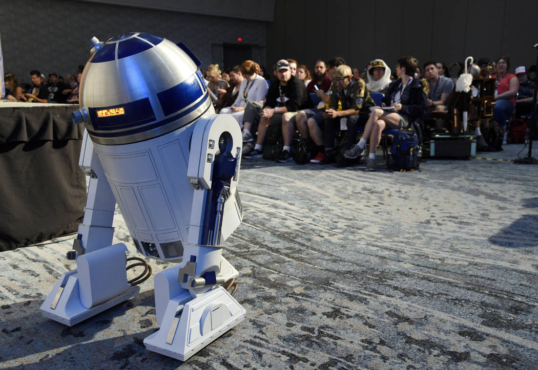 "Star Wars" robot character R2-D2 stands in front of the audience at the Princess Leia Star Wars Fan Club Tribute Presentation during the 2017 Comic-Con International on Sunday, July 23, 2017, in San Diego, Calif. (Photo by Chris Pizzello/Invision/AP)