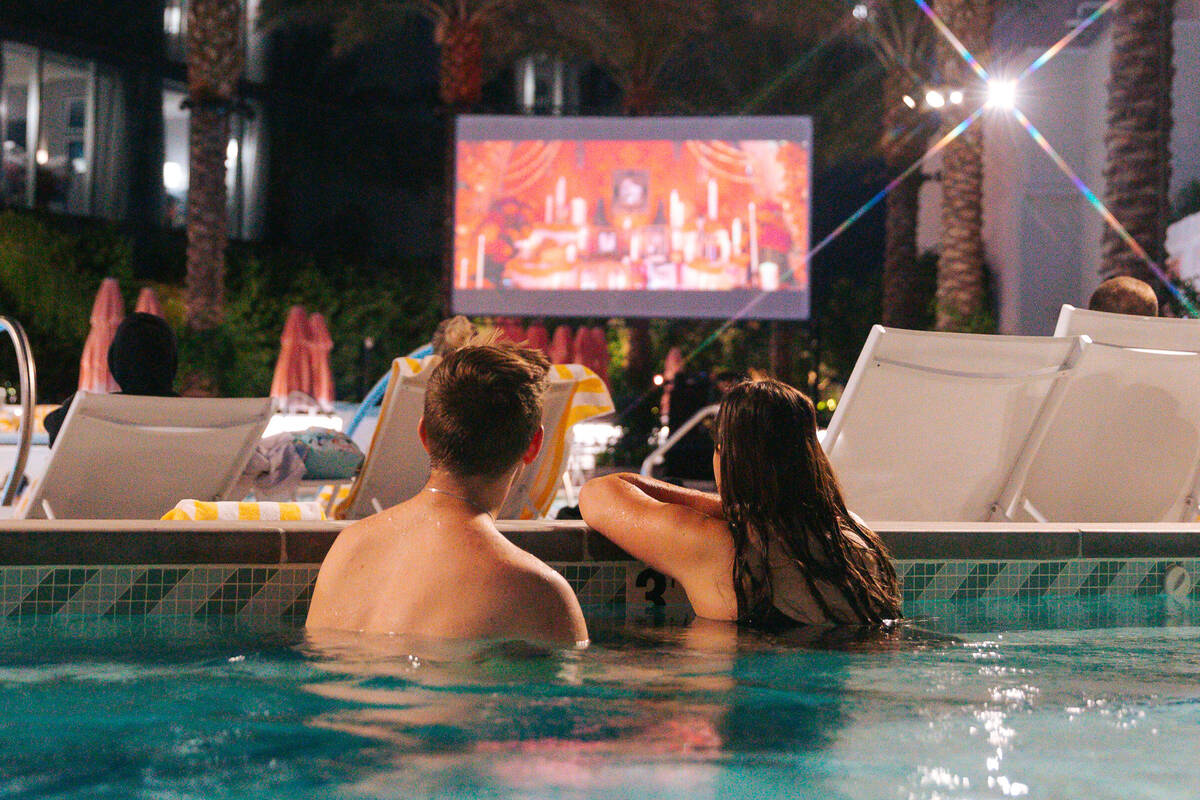 The Dive In Movies series has returned to the Boulevard Pool, with movies shown on the hotel’s 65-foot digital marquee.