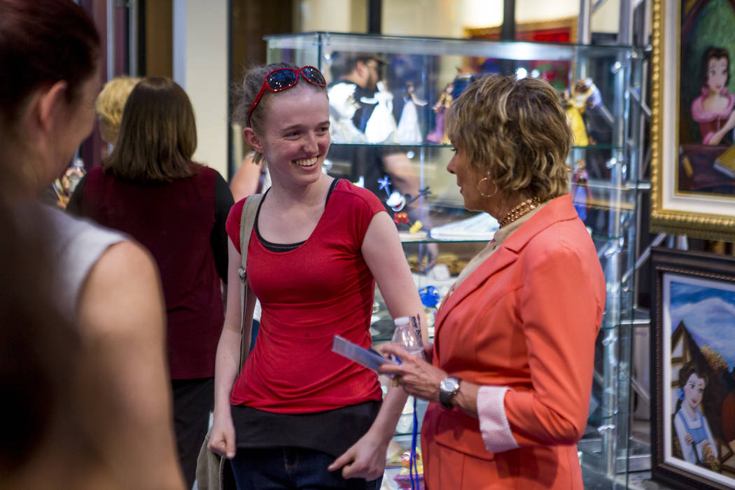 Allison Hosier talks with Paige O’Hara, who voiced Belle in the original "Beauty and the Beast" during the grand opening of the Magical Memories Disney Fine Art Gallery in the Forum Shops at Caesars on Thursday, Aug. 10, 2017. Patrick Connolly Las Vegas Review-Journal @PConnPie