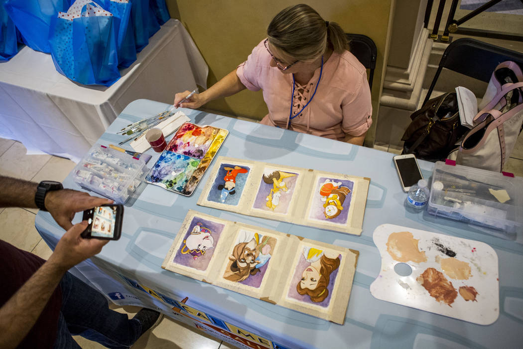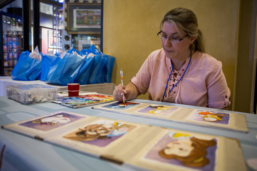 Artist Michelle St. Laurent works on watercolors during the grand opening of the Magical Memories Disney Fine Art Gallery in the Forum Shops at Caesars on Thursday, Aug. 10, 2017. Patrick Connolly Las Vegas Review-Journal @PConnPie