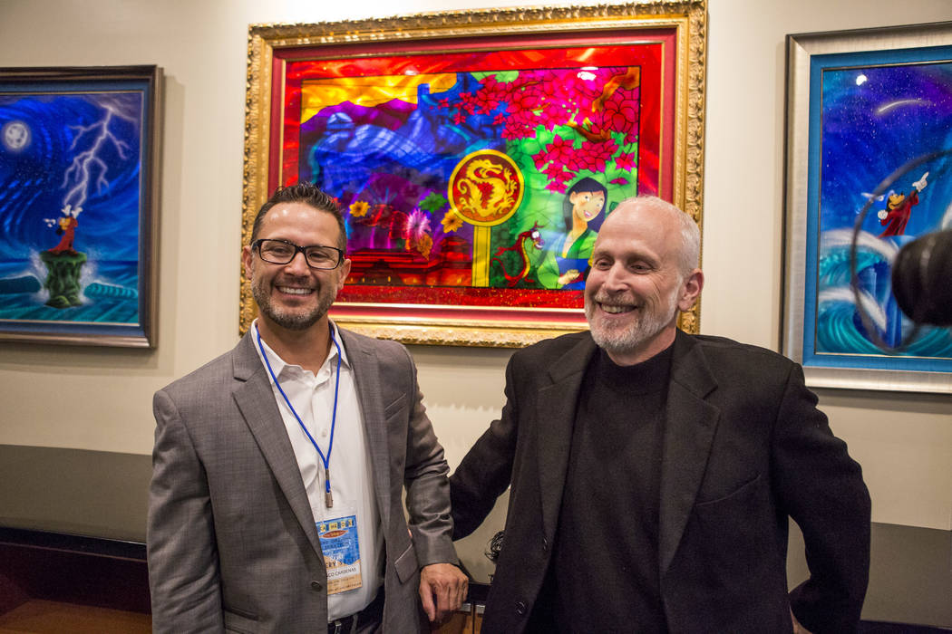 Francisco Cardenas, gallery director, left, and Niel Cantor, managing director, during the grand opening of the Magical Memories Disney Fine Art Gallery in the Forum Shops at Caesars on Thursday, Aug. 10, 2017. Patrick Connolly Las Vegas Review-Journal @PConnPie