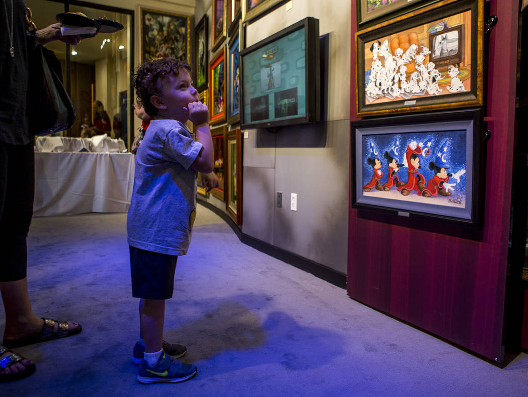 Gus Karris, 4, enjoys Mickey Mouse art while wearing his Mickey Mouse shirt during the grand opening of the Magical Memories Disney Fine Art Gallery in the Forum Shops at Caesars on Thursday, Aug. 10, 2017. Patrick Connolly Las Vegas Review-Journal @PConnPie