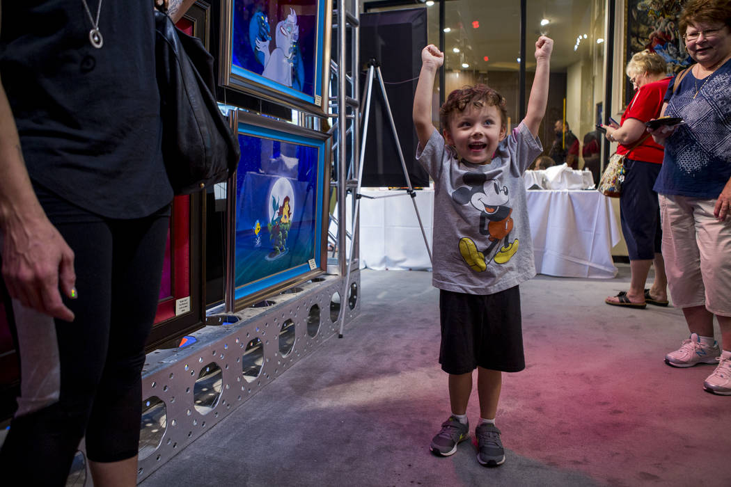 Gus Karris, 4, expresses his excitement during the grand opening of the Magical Memories Disney Fine Art Gallery in the Forum Shops at Caesars on Thursday, Aug. 10, 2017. Patrick Connolly Las Vegas Review-Journal @PConnPie