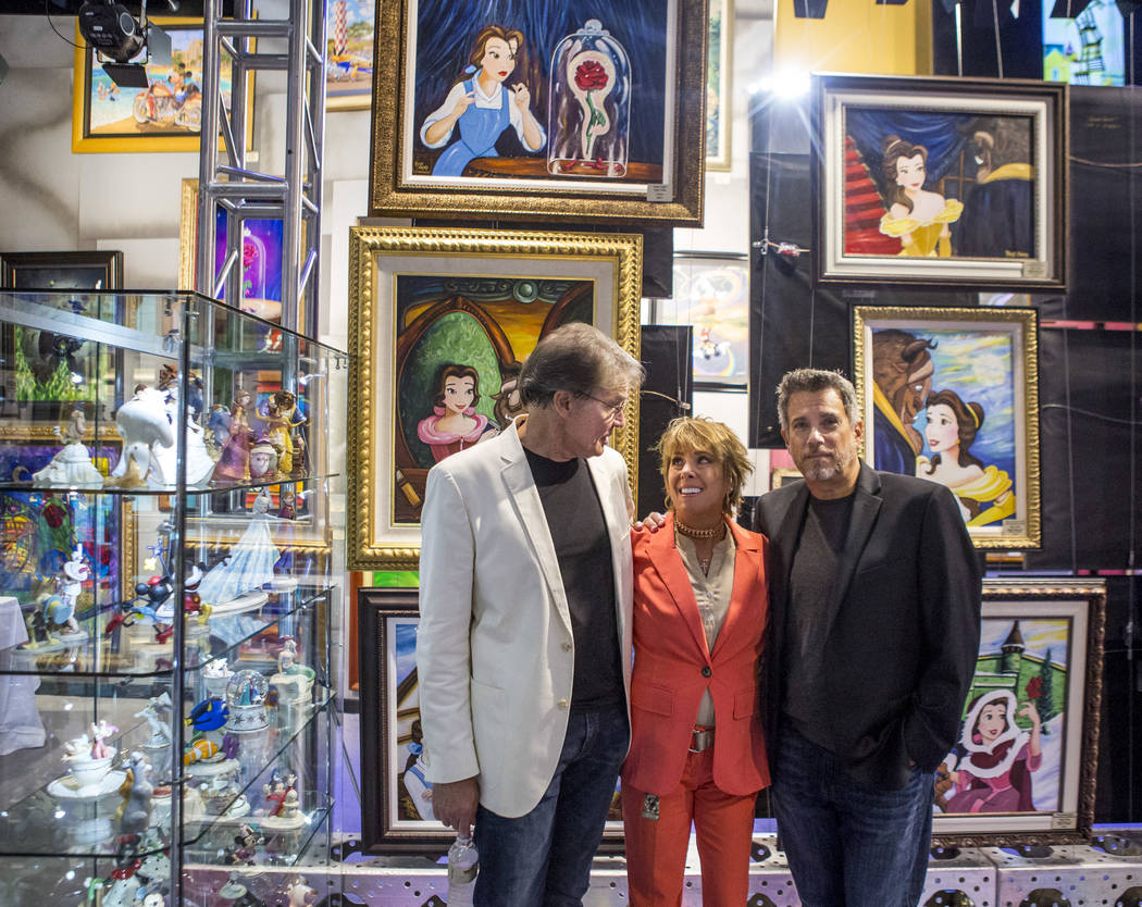 "Beauty and the Beast" voice actors, from left, Richard White (Gaston), Paige O’Hara (Belle), and Robby Benson (Beast), during the grand opening of the Magical Memories Disney Fine Art Gallery in the Forum Shops at Caesars on Thursday, Aug. 10, 2017. Patrick Connolly Las Vegas Review-Journal @PConnPie