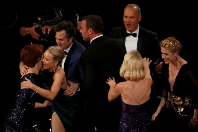 LOS ANGELES — In an upset victory, newspaper drama “Spotlight” won best picture at the 88th Academy Awards over heavily favored survival epic “The Revenant.” The drama about the Boston Globe’s investigation into the Catholic Church sexual abuse scandal also nabbed a statue for its screenplay, while “Mad Max: Fury Road” picked up a leading sixOscars exclusively in technical categories.