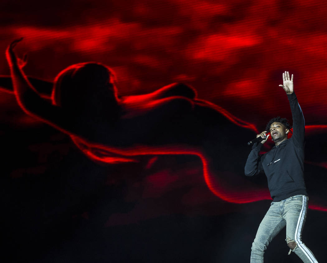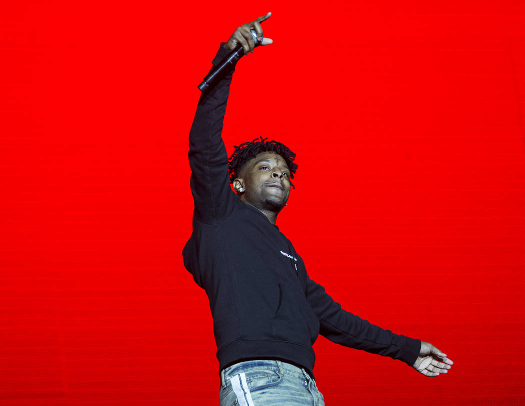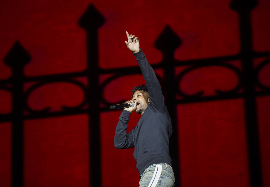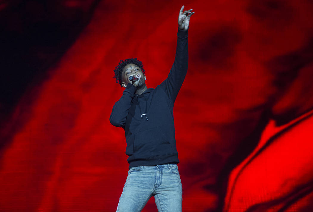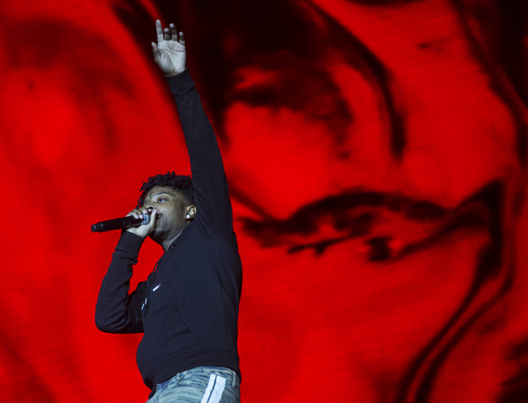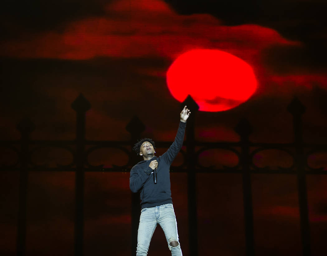 21 Savage performs on the Jackpot stage during Day N Vegas music festival on Saturday, Nov. 2, 2019, at the Las Vegas Festival Grounds, in Las Vegas. (Benjamin Hager/Las Vegas Review-Journal) @benjaminhphoto