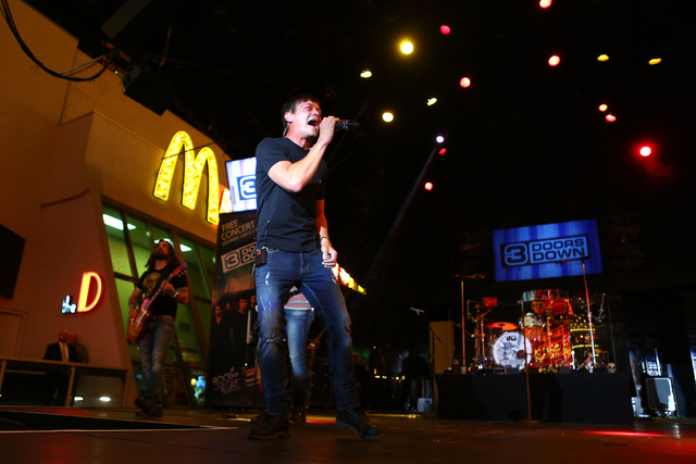 Rock band 3 Doors Down, best known for their hit song “Kryptonite,” performed for free Saturday night to kick off the Fremont Street Experience Rock of Vegas concert season.