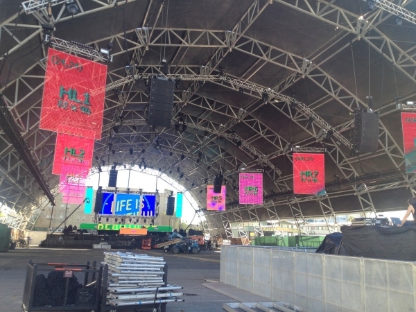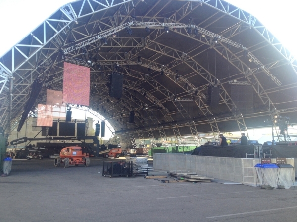 Bear says the Troubadour Stage took 64 guys slightly less than two days to construct it. By contrast, Circuit Grounds took three weeks to build and almost a week to disassemble. "It's like a giant erector set," Bear says, noting how he and his team put this particular structure together in segments, staggering the sections so everybody wasn't running into one another.