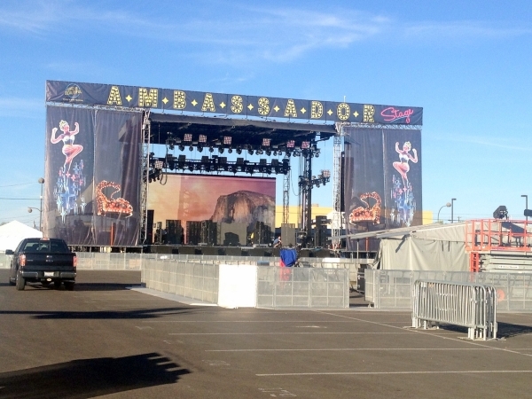 A few rights and lefts later, we pull up to the Troubadour Stage, which is sandwiched in the parking lot between Container Park and the Western Hotel. At first sight, it calls to mind Circuit Grounds, one of the secondary stages at this year's EDC. For good reason, it turns out; the Troubadour Stage is built with the same materials.
