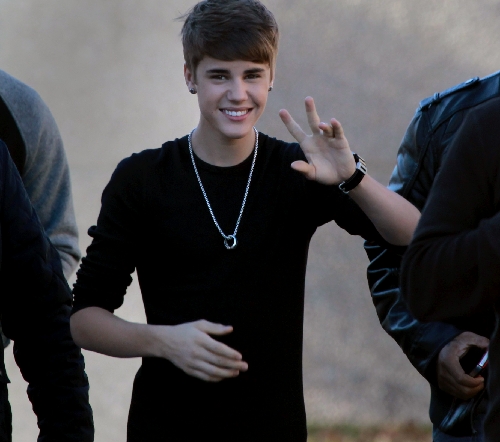 Outside the school, about 100 teenage girls lined the sidewalk hoping to catch a glimpse to cure their own Bieber fever.