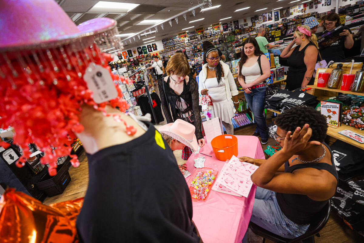 Fans enter a raffle to win merch during a listening party in honor of the one year anniversary of Chappell Roan’s “The Rise and Fall of a Midwest Princess” album at Zia Records on Sunday, Sept. 22, 2024, in Las Vegas. (Madeline Carter/Las Vegas Review-Journal)