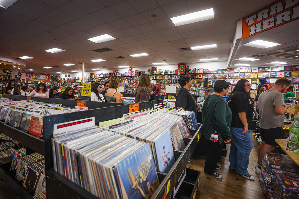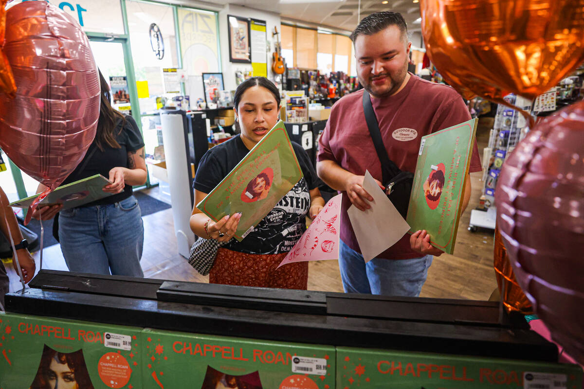 Fans shop for special edition Chappell Roan vinyl during a listening party in honor of the one year anniversary of Chappell Roan’s “The Rise and Fall of a Midwest Princess” album at Zia Records on Sunday, Sept. 22, 2024, in Las Vegas. (Madeline Carter/Las Vegas Review-Journal)